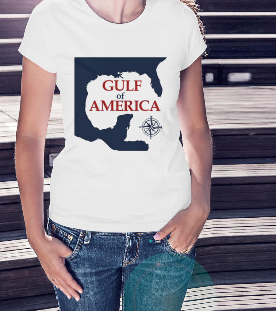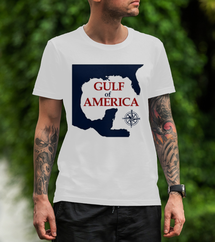 The Gulf Of America Map Mark Kaye Compass T-shirt is designed for everyday wear and a consistent fit. Fabric is pre-shrunk ring-spun cotton with durable stitching. See the size chart below for exact measurements.