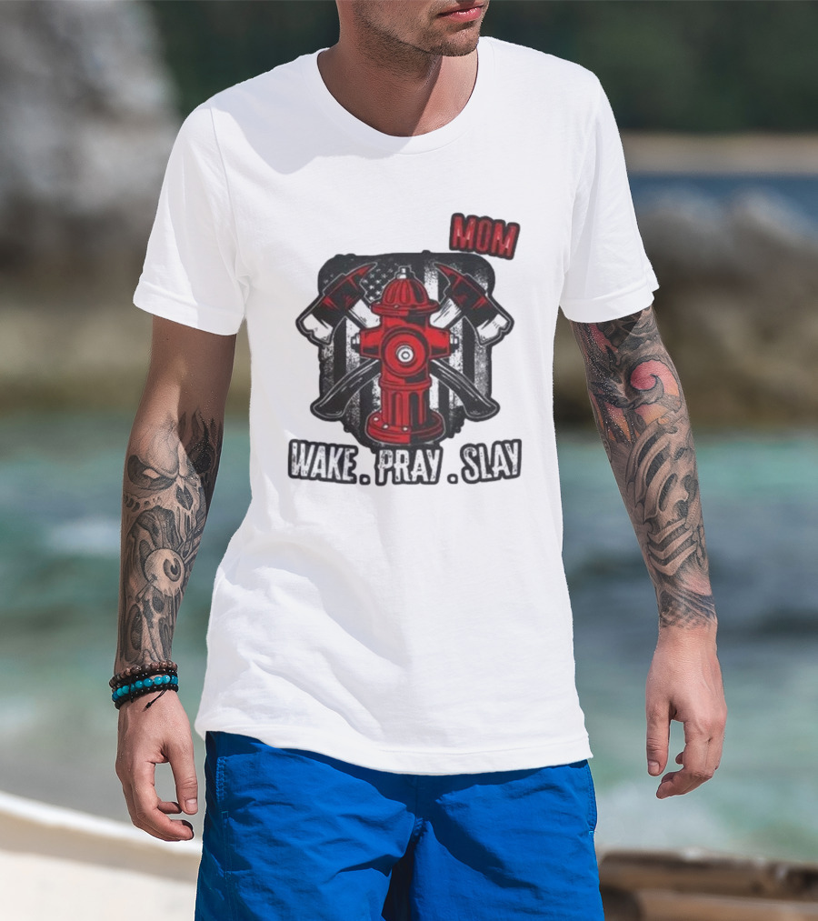 California Wildfire Firefighter Mom Wake Pray Slay Hydrant Axes U.S. Flag T-Shirt