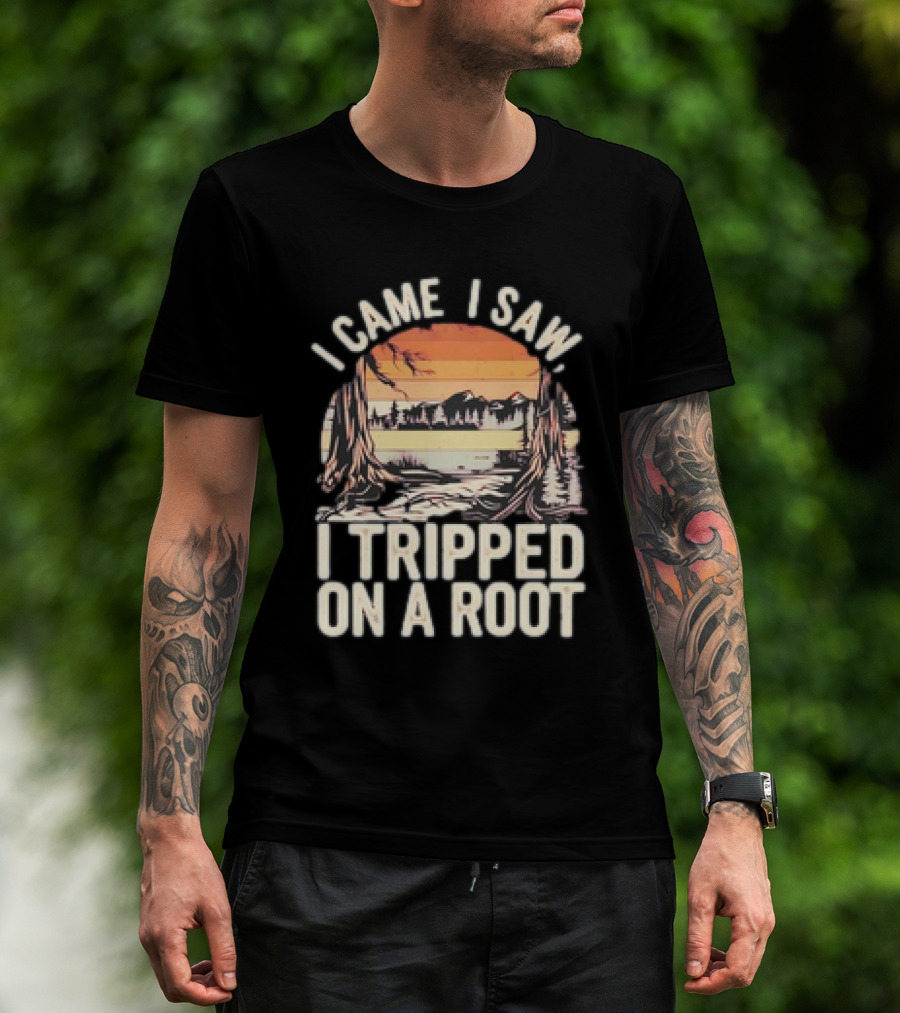 I Came I Saw I Tripped On A Root Vintage Sunset Forest Scene T-Shirt