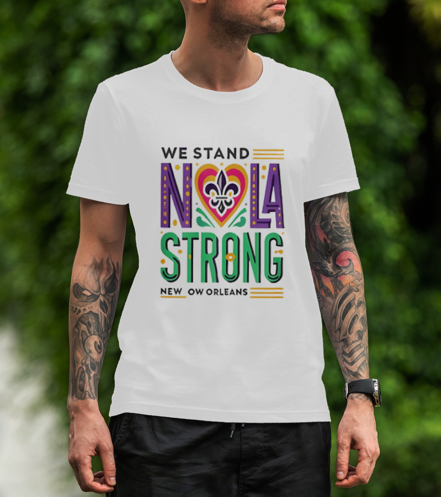We Stand NOLA Strong New Orleans Fleur-de-Lis Heart T-Shirt