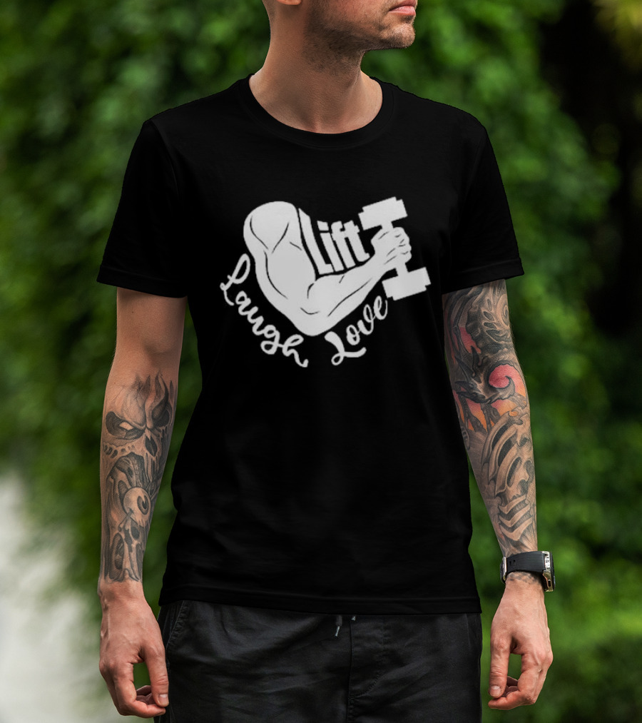 Lift Laugh Love Muscle Flex Dumbbell Arm Strength T-Shirt