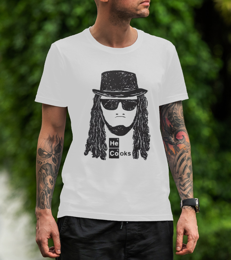 The James Cook He Cooks Breaking Bad Parody with Funny Science Twist T-shirt is designed for everyday wear and a consistent fit. Fabric is pre-shrunk ring-spun cotton with durable stitching. See the size chart below for exact measurements.