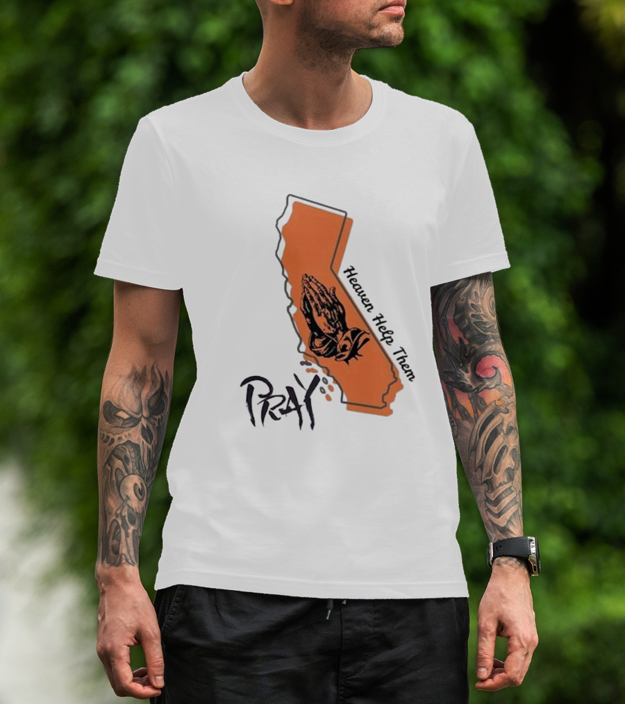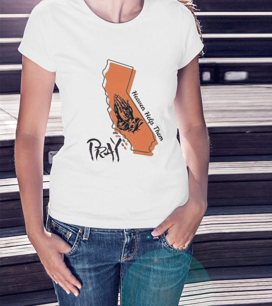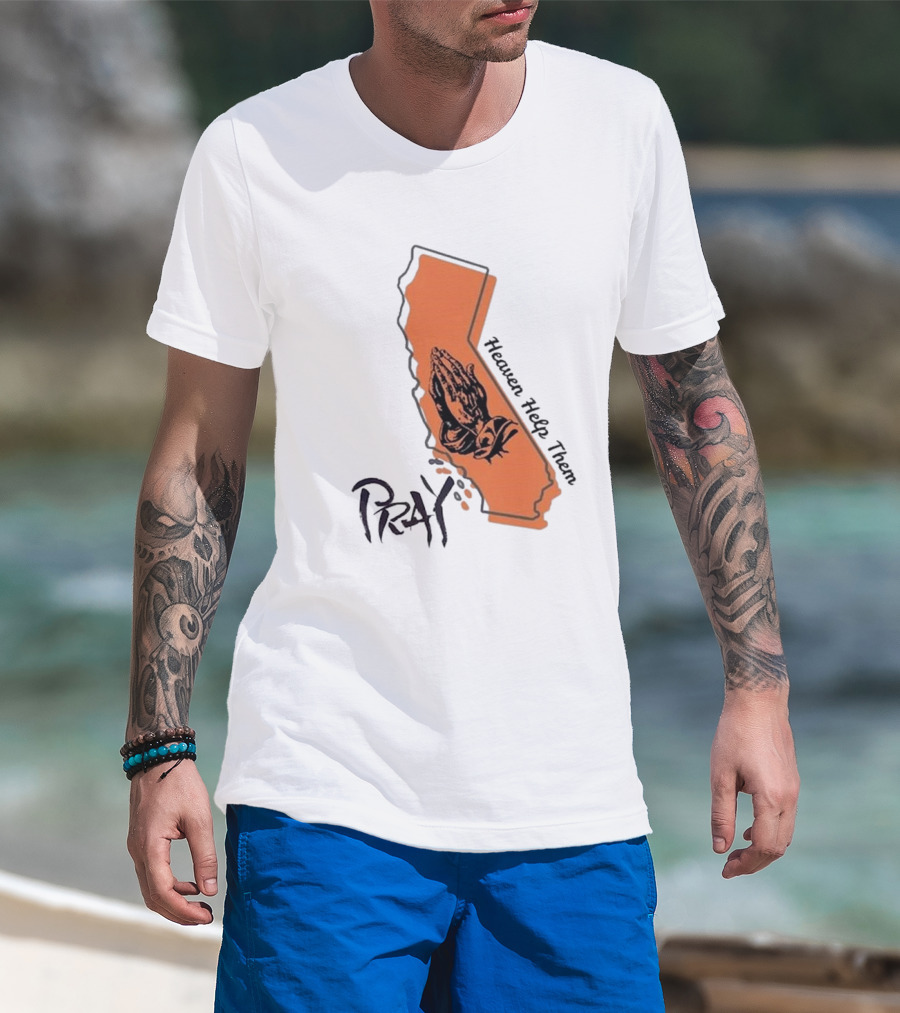 Pray For Los Angeles California Heaven Help Them Map And Hands T-Shirt