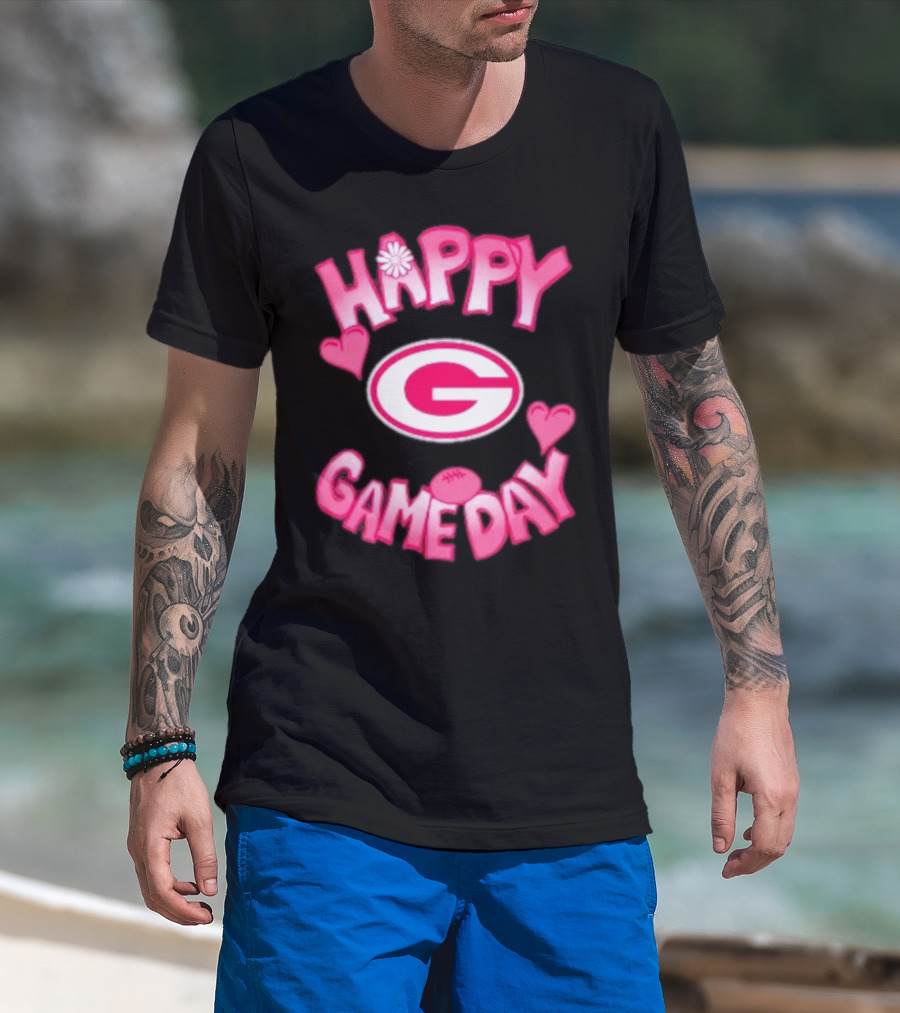 The Happy Gameday Valentine’s Day Green Bay Packers 2025 T-shirt is designed for everyday wear and a consistent fit. Fabric is pre-shrunk ring-spun cotton with durable stitching. See the size chart below for exact measurements.