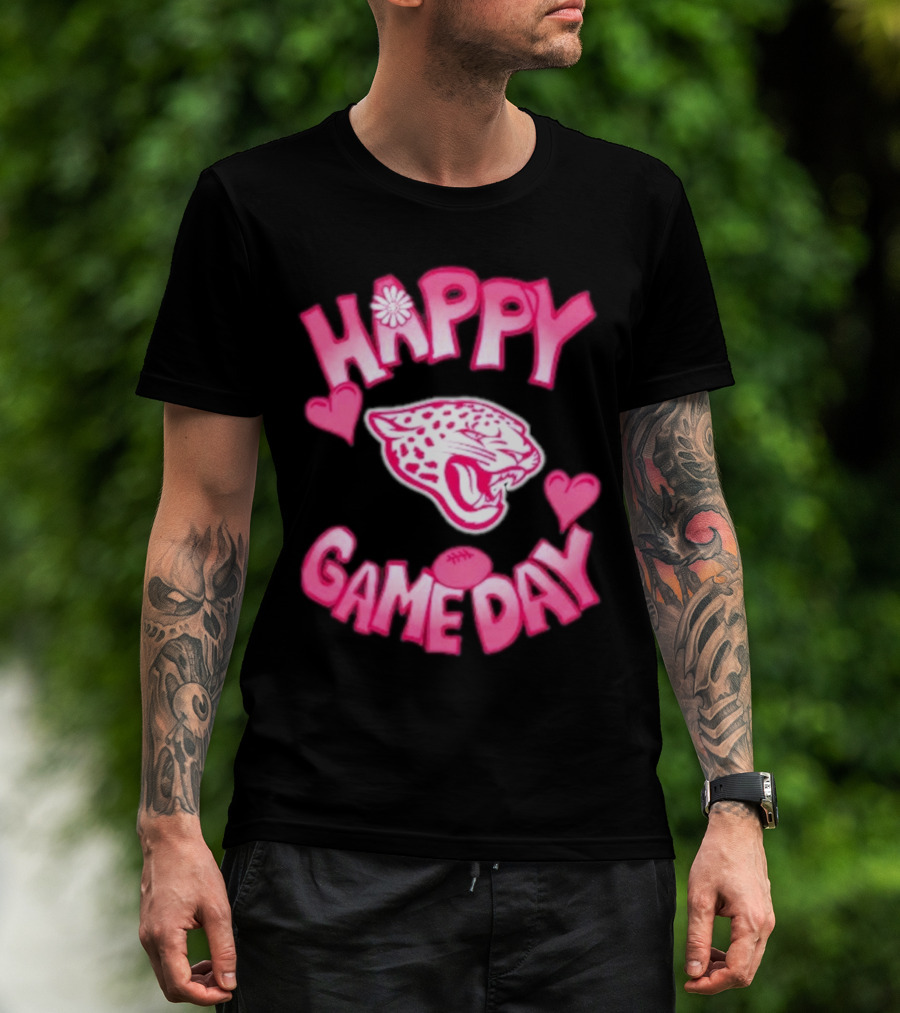 The Valentine’s Day Jacksonville Jaguars Happy Gameday 2025 Football Hearts Panther T-shirt is designed for everyday wear and a consistent fit. Fabric is pre-shrunk ring-spun cotton with durable stitching. See the size chart below for exact measurements.