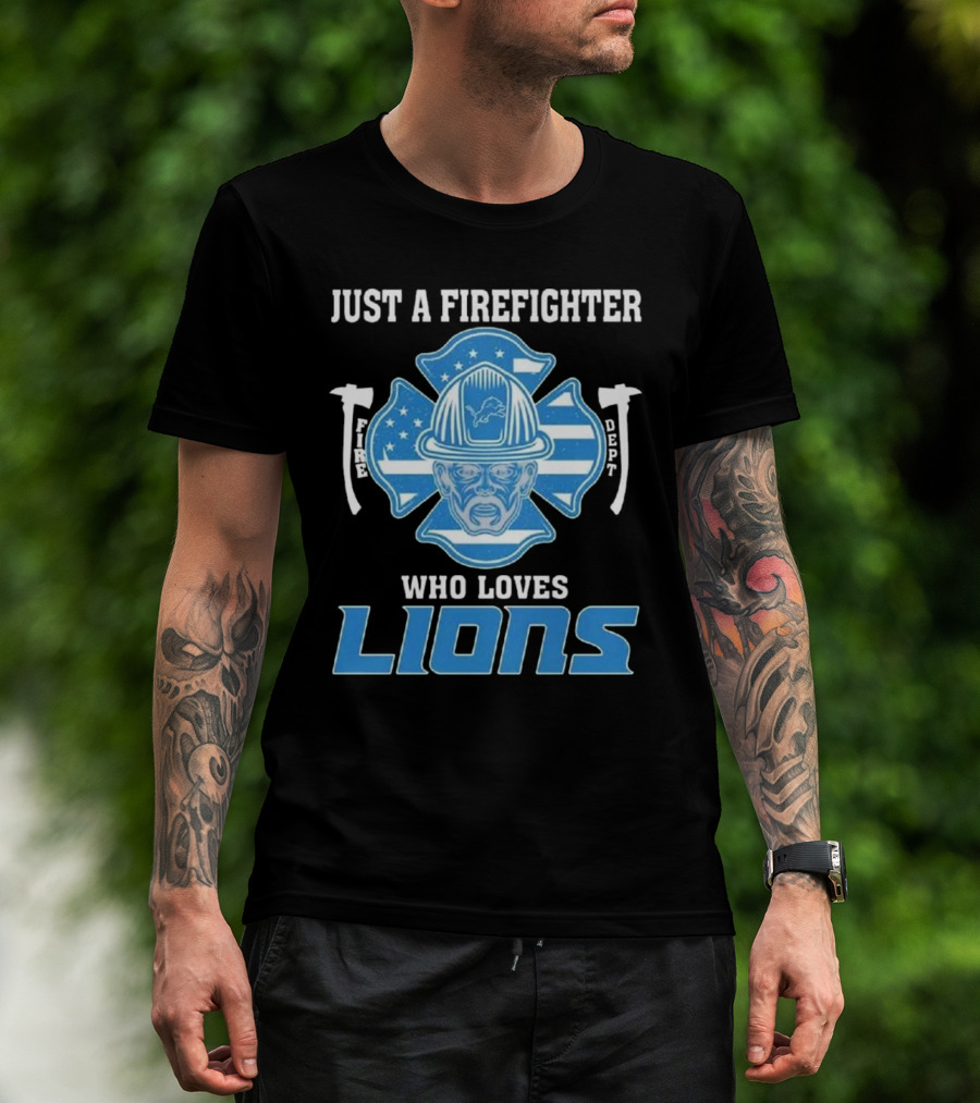 Just A Firefighter Who Loves Lions Fire Dept Helmet Lions T-Shirt