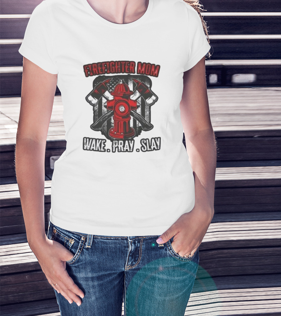 Firefighter Mom Wake Pray Slay Hydrant Axes Banner T-Shirt