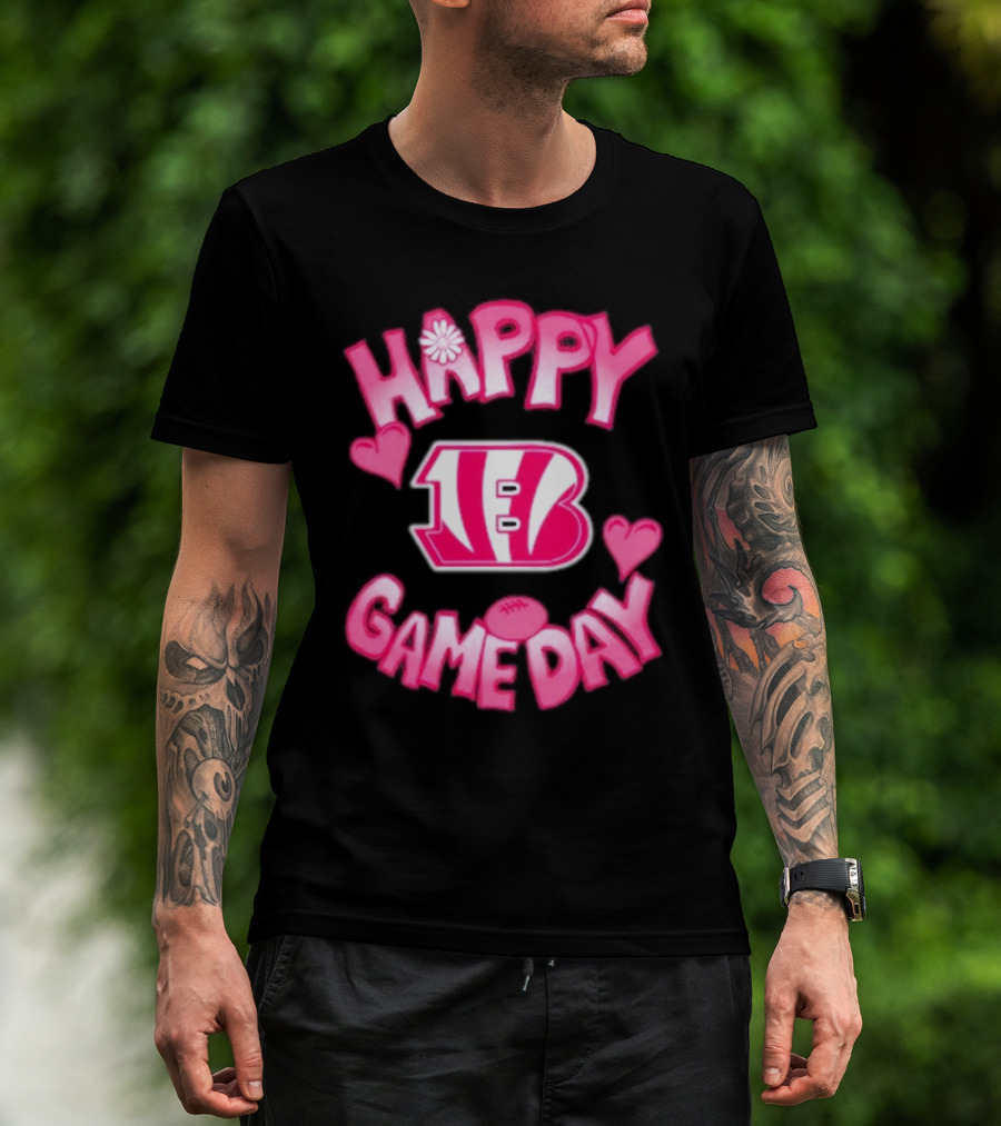 The Cincinnati Bengals Happy Gameday Valentine’s Day 2025 T-shirt is designed for everyday wear and a consistent fit. Fabric is pre-shrunk ring-spun cotton with durable stitching. See the size chart below for exact measurements.