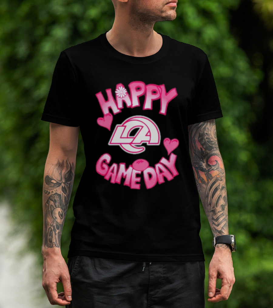 The Happy Gameday Los Angeles Rams Valentine’s Day 2025 T-shirt is designed for everyday wear and a consistent fit. Fabric is pre-shrunk ring-spun cotton with durable stitching. See the size chart below for exact measurements.