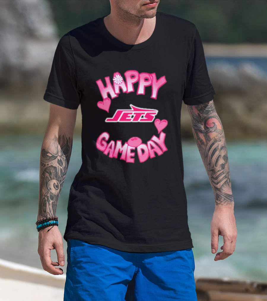 The Happy Gameday New York Jets Valentine’s Day 2025 T-shirt is designed for everyday wear and a consistent fit. Fabric is pre-shrunk ring-spun cotton with durable stitching. See the size chart below for exact measurements.