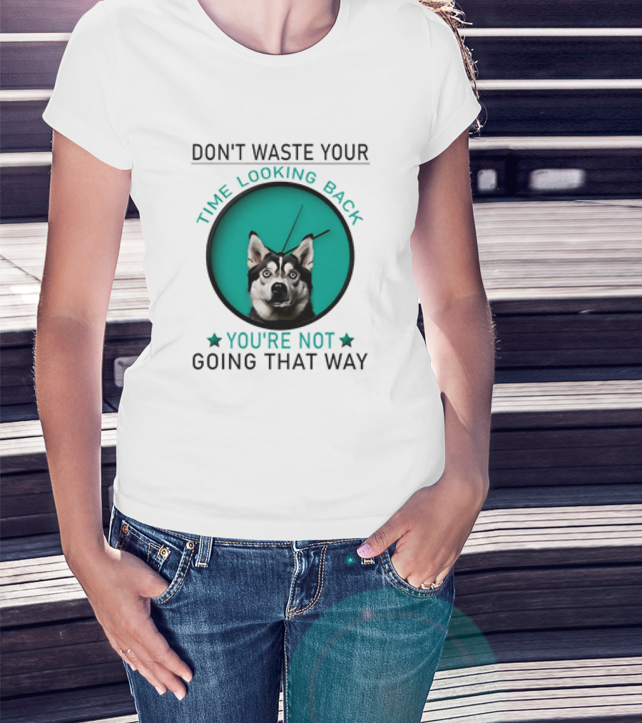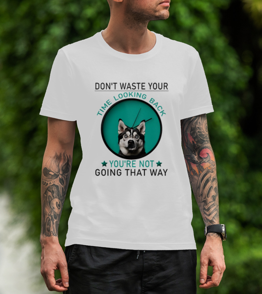Don't Waste Your Time Looking Back You're Not Going That Way Husky Clock T-Shirt