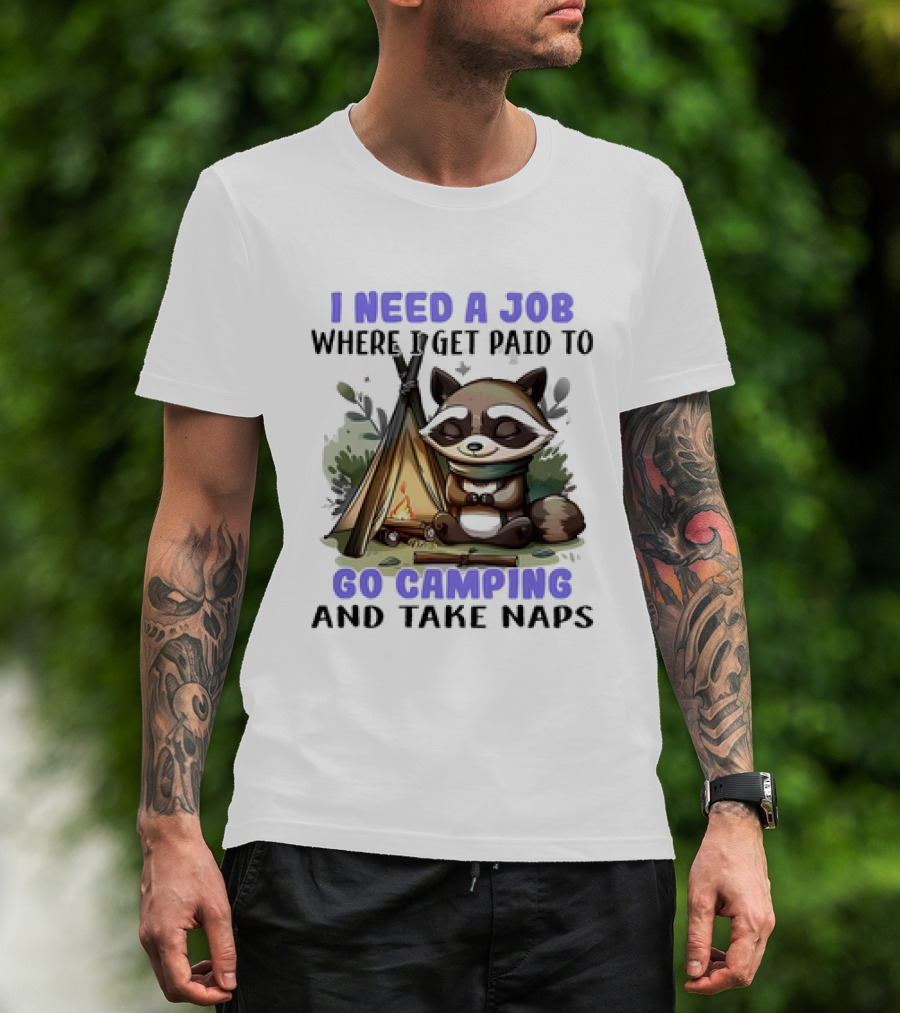 Raccoon I Need A Job Where I Get Paid To Go Camping And Take Naps T-Shirt