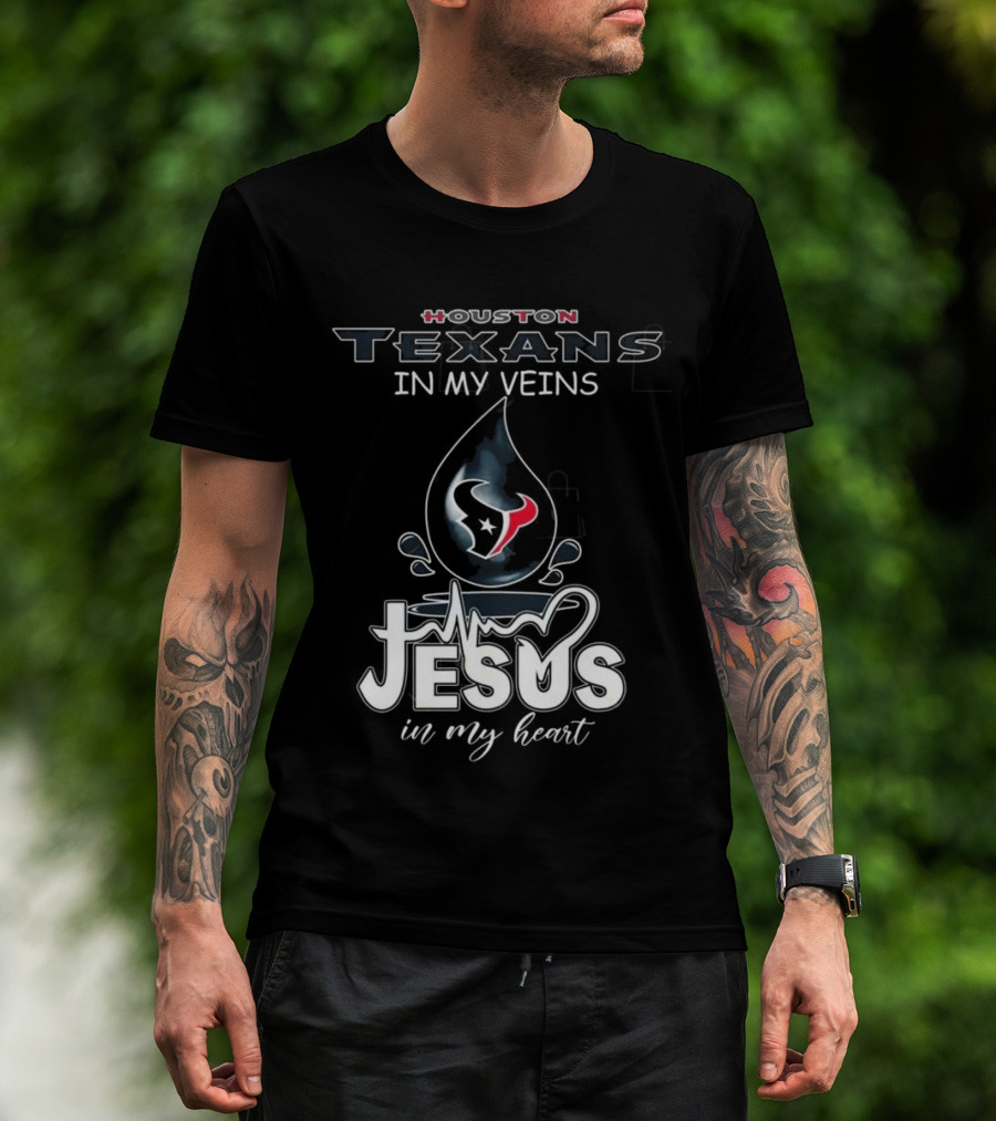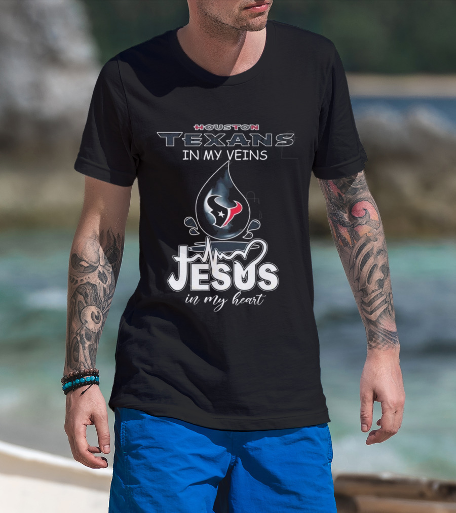 Houston Texans In My Veins Jesus In My Heart 2025 T-Shirt