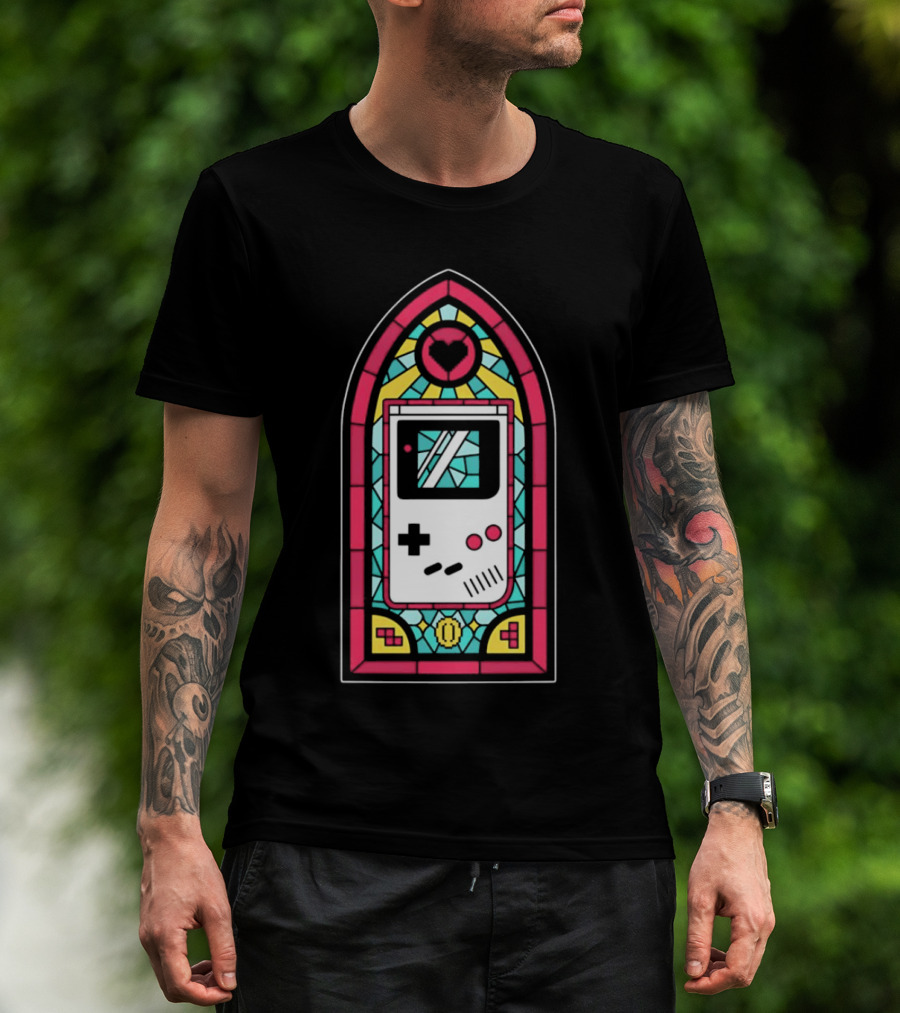 Game Boy 8-Bit Stained Glass Heart Coin Pixel Art Window T-Shirt