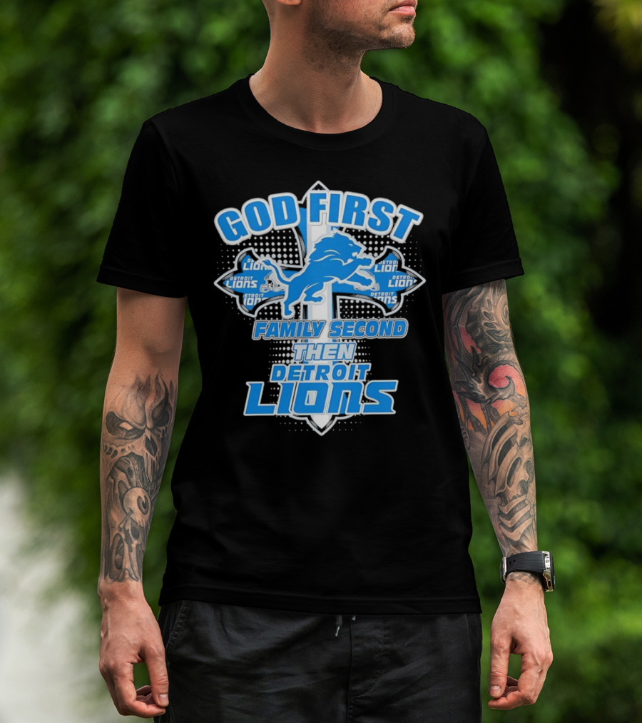 God First Family Second Then Detroit Lions Football Cross T-Shirt