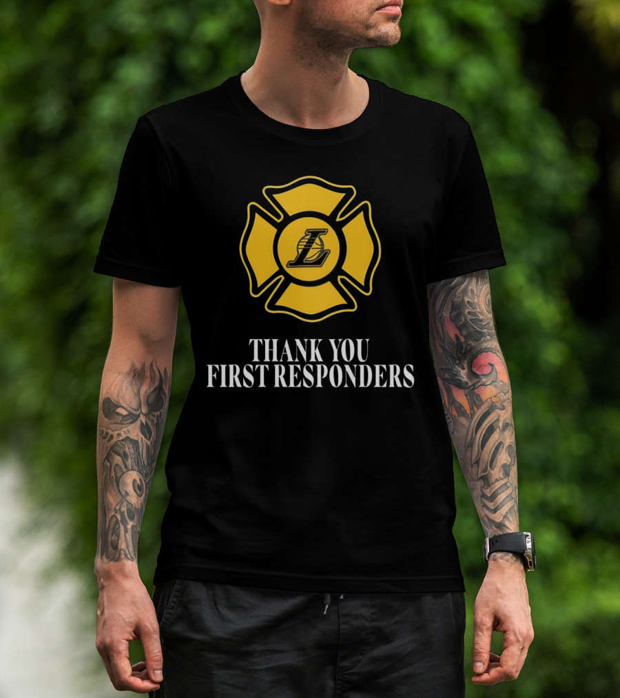 Los Angeles Lakers Thank You First Responders Firefighter Emblem T-Shirt
