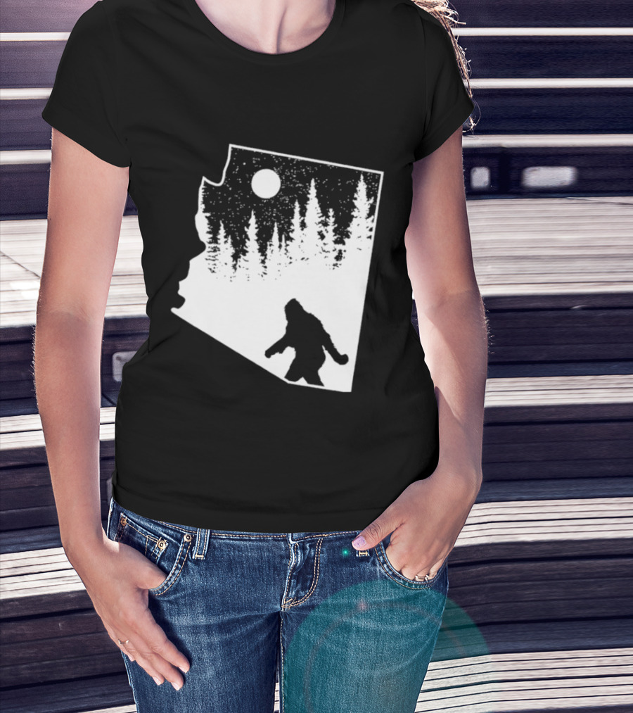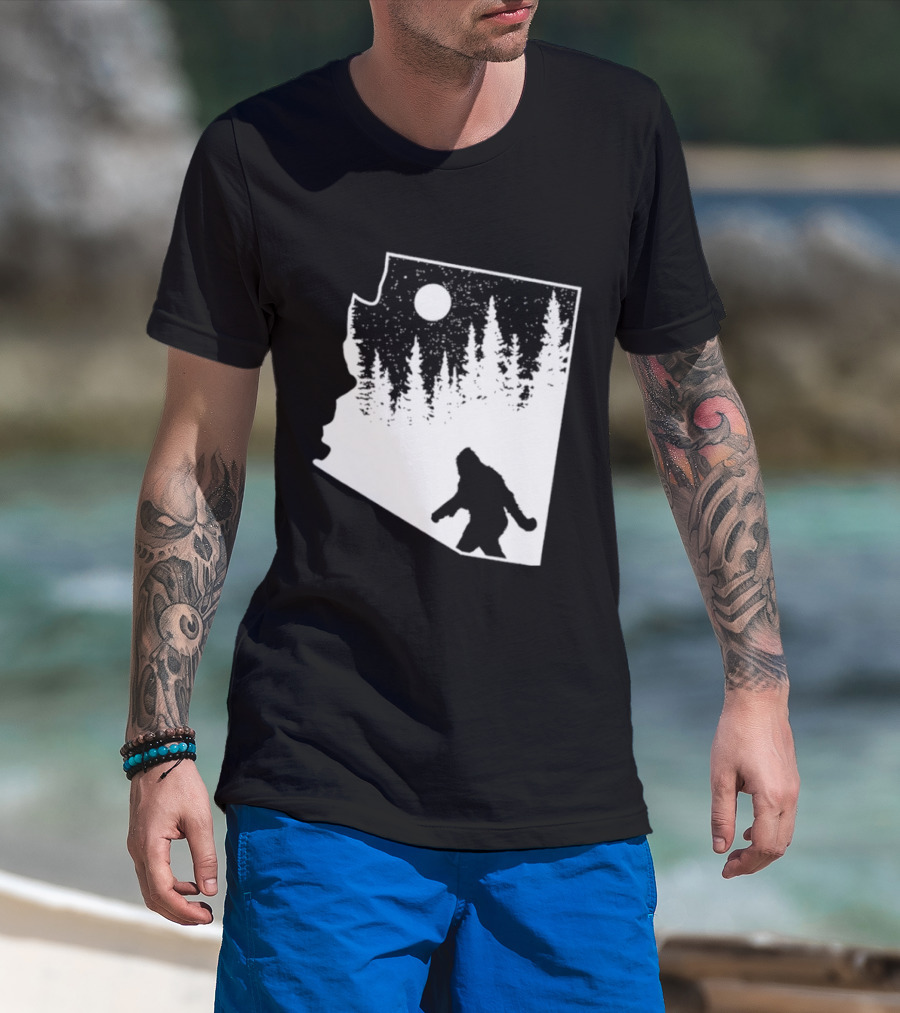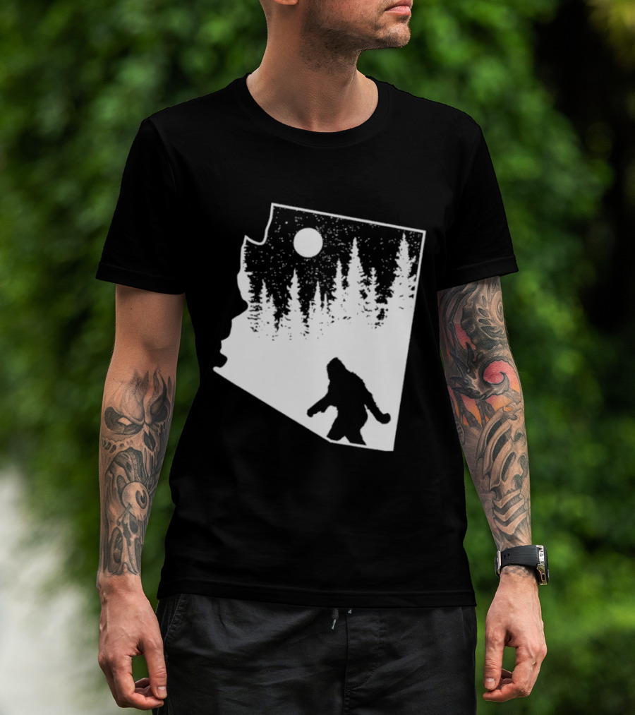 Bigfoot Arizona Pride Sasquatch Funny Arizona Map Forest Moon T-Shirt