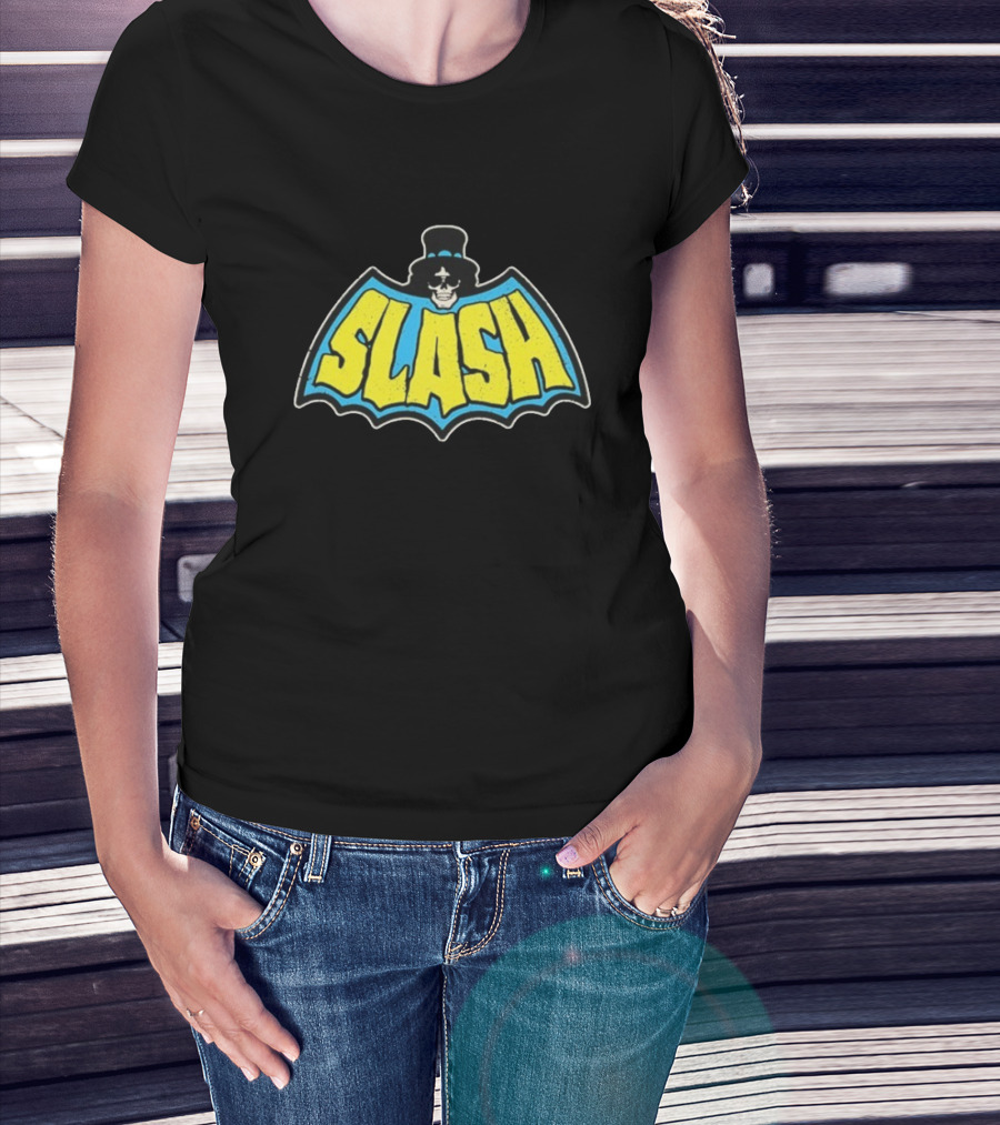 SLASH Batman Inspired Logo With Top Hat And Skull T-Shirt