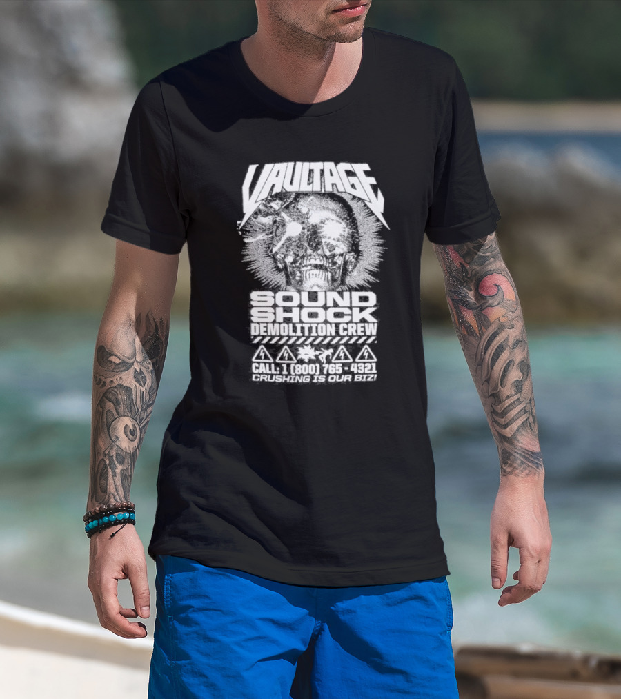 Vaultage Space Laces Sound Shock Demolition Crew Crushing Is Our Biz Skull T-Shirt