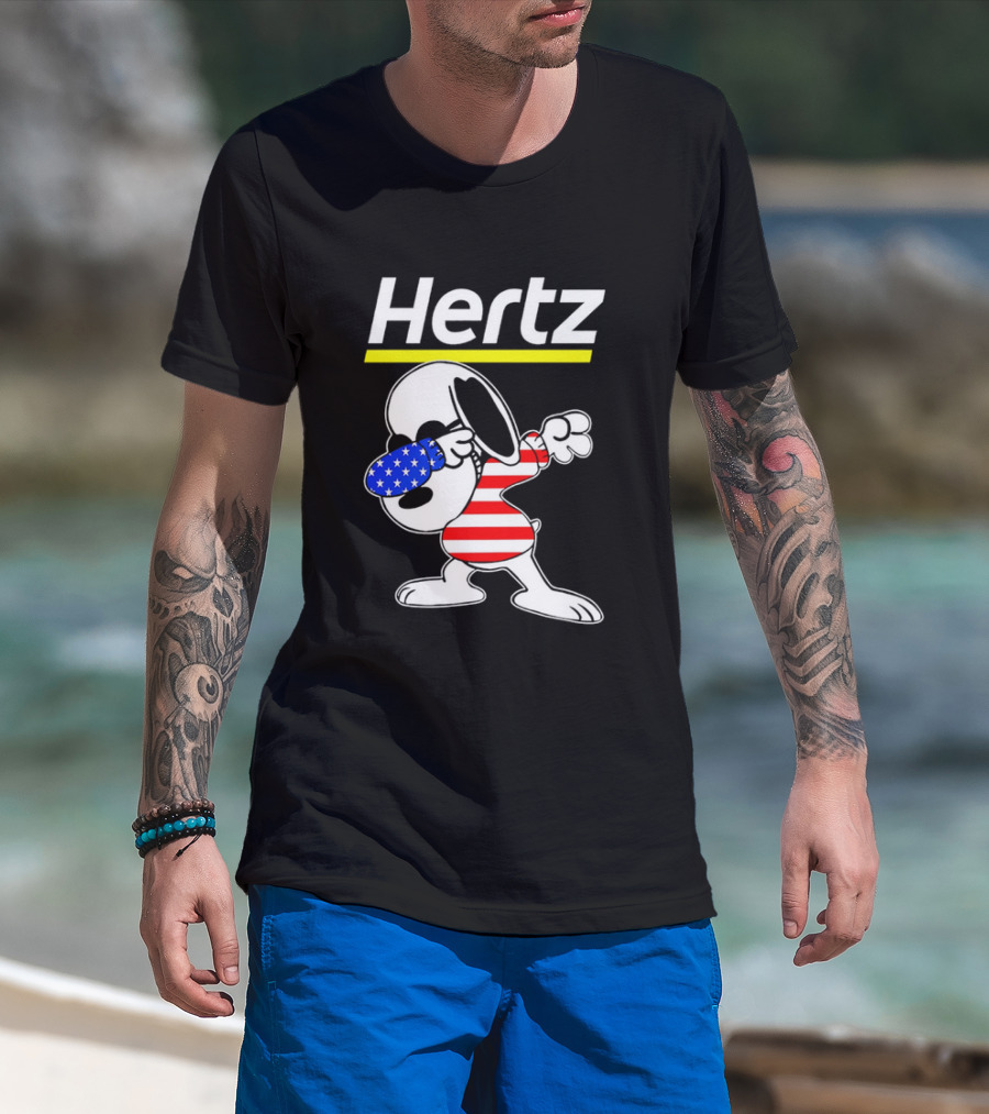 Hertz Snoopy Dabbing American Flag Pattern T-Shirt