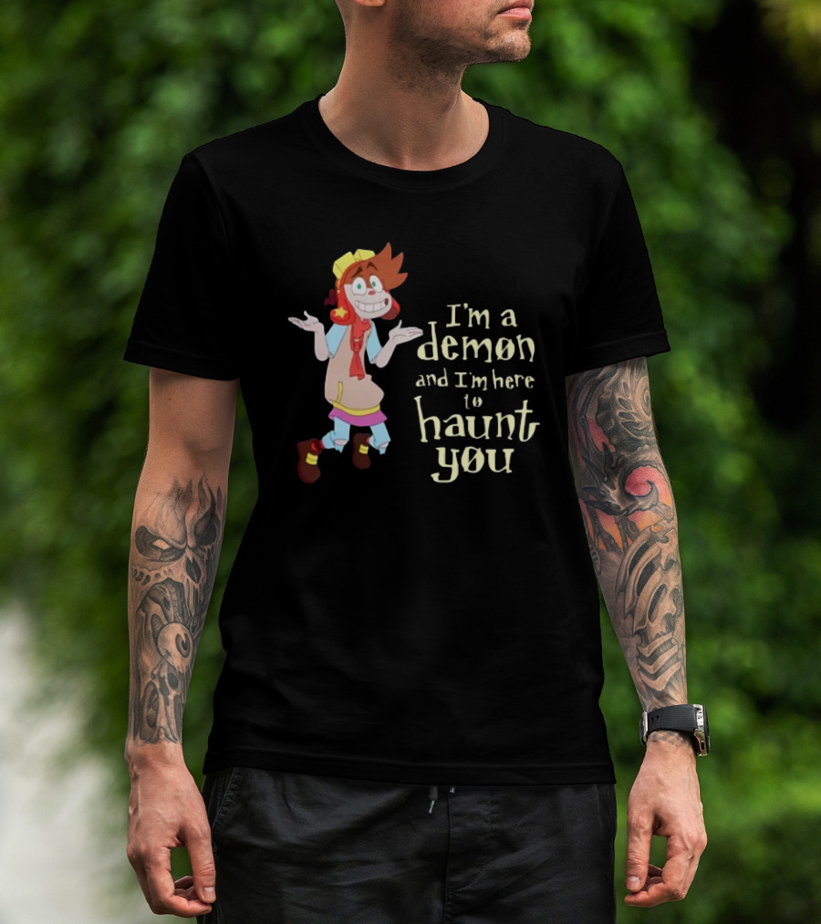 I'm A Demon And I'm Here To Haunt You Whimsical Cartoon Character With Red Hair And Yellow Cap T-Shirt