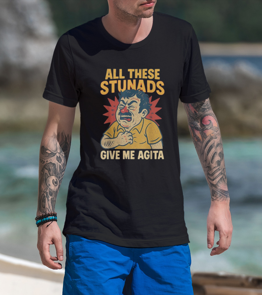 ALL THESE STUNADS GIVE ME AGITA Cartoon Character Holding Chest T-Shirt