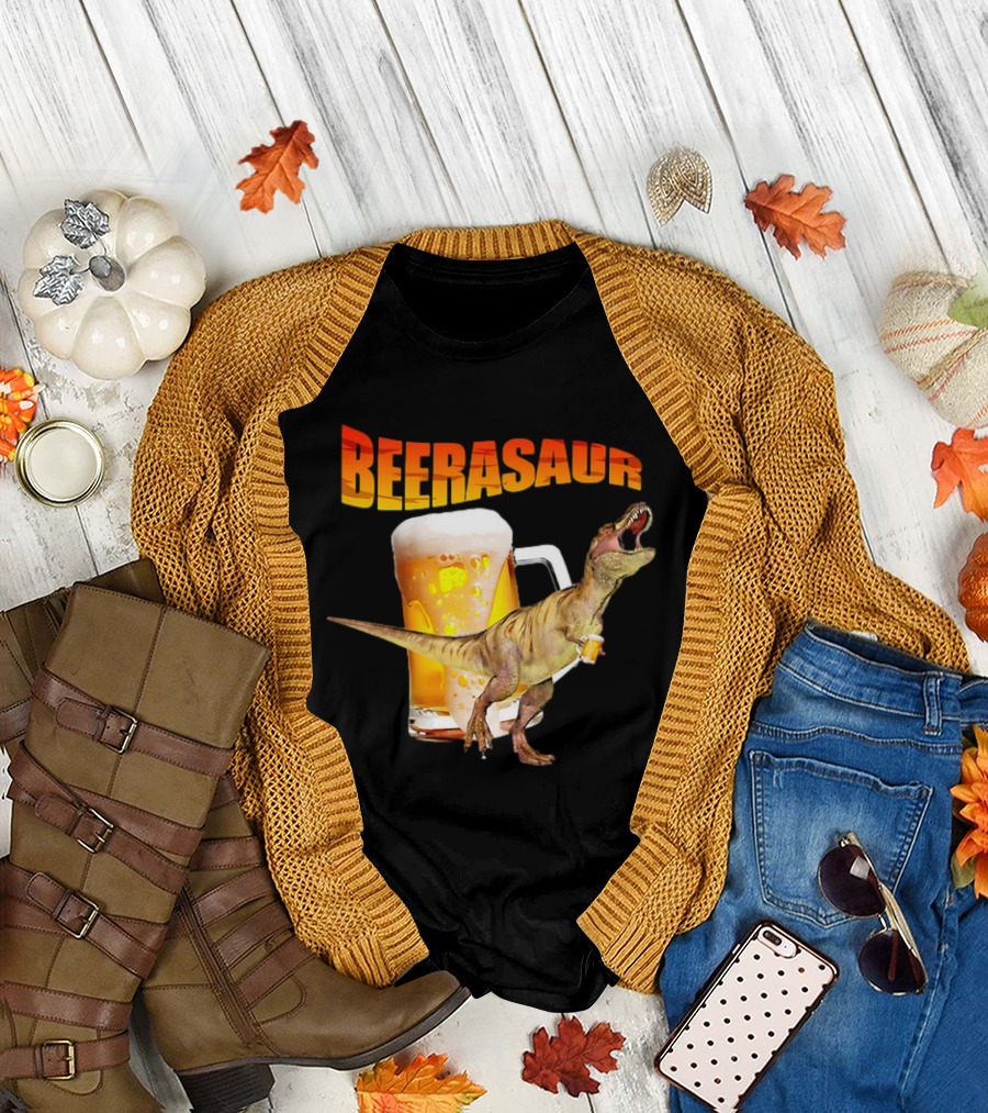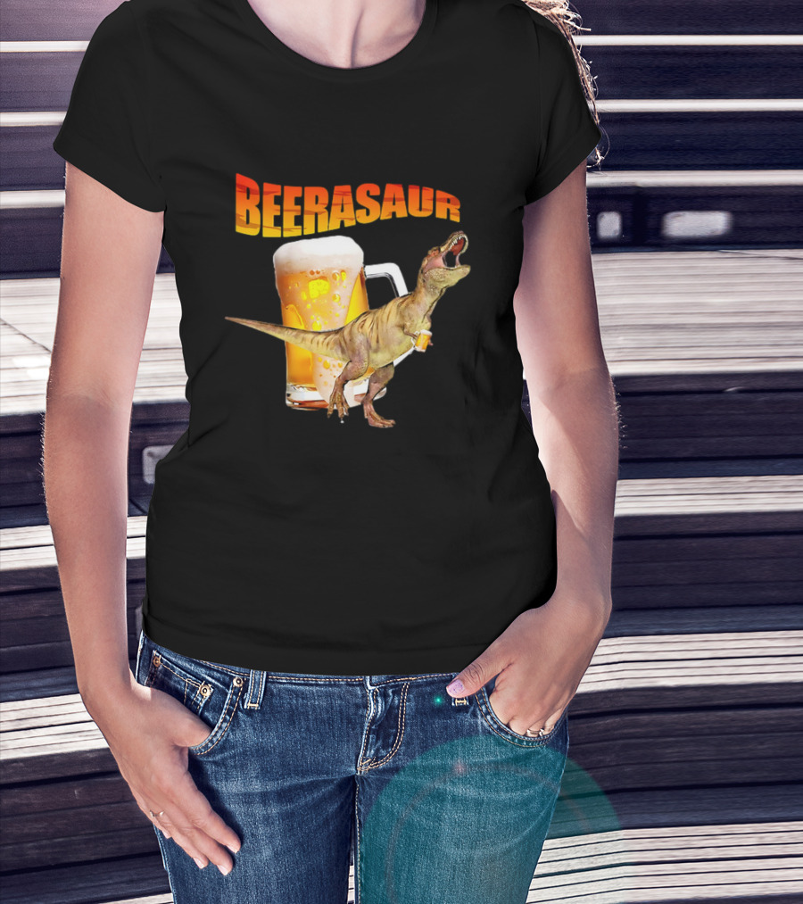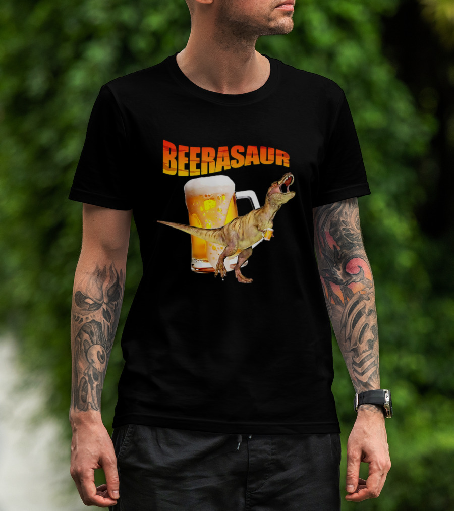 Beerasaur Dinosaur With Beer Ferocious Roar T-Shirt