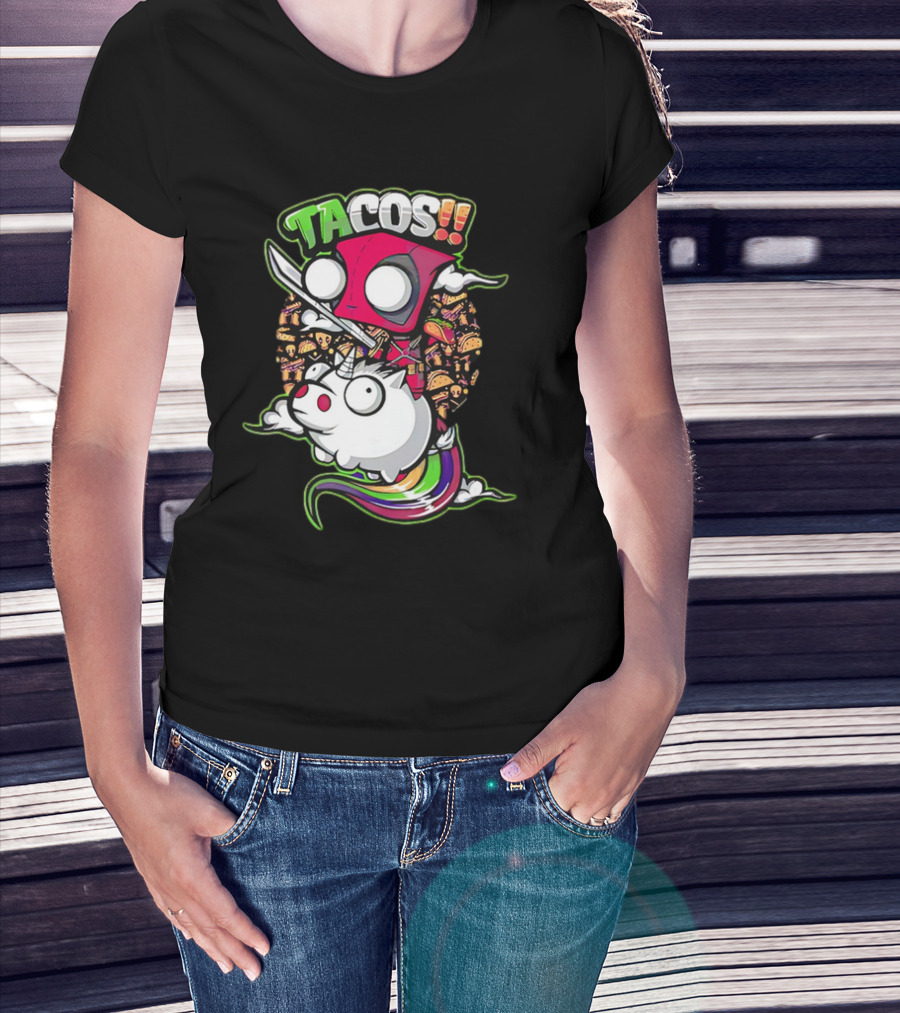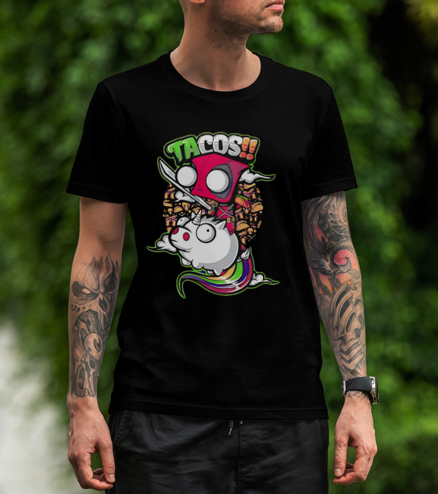 The Tacos Deadpool Riding Unicorn Surrounded by Tacos Cartoon T-shirt is designed for everyday wear and a consistent fit. Fabric is pre-shrunk ring-spun cotton with durable stitching. See the size chart below for exact measurements.