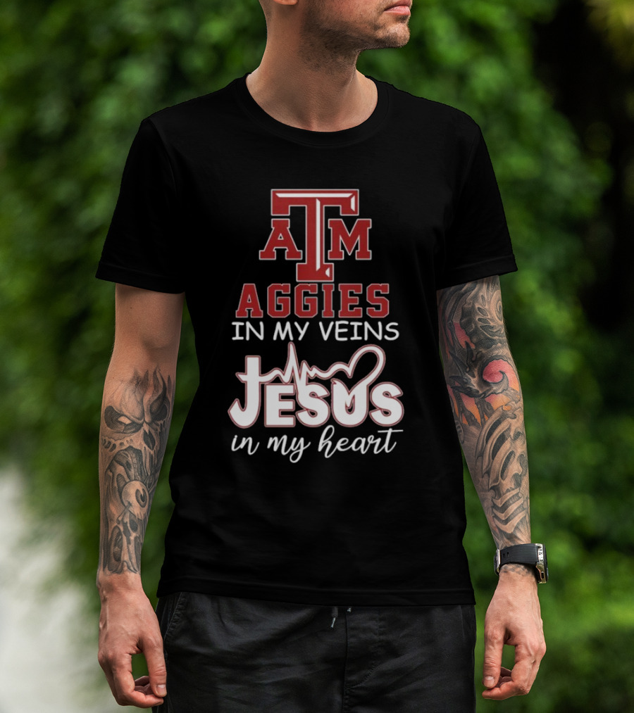 Texas A&M Aggies In My Veins Jesus In My Heart T-Shirt