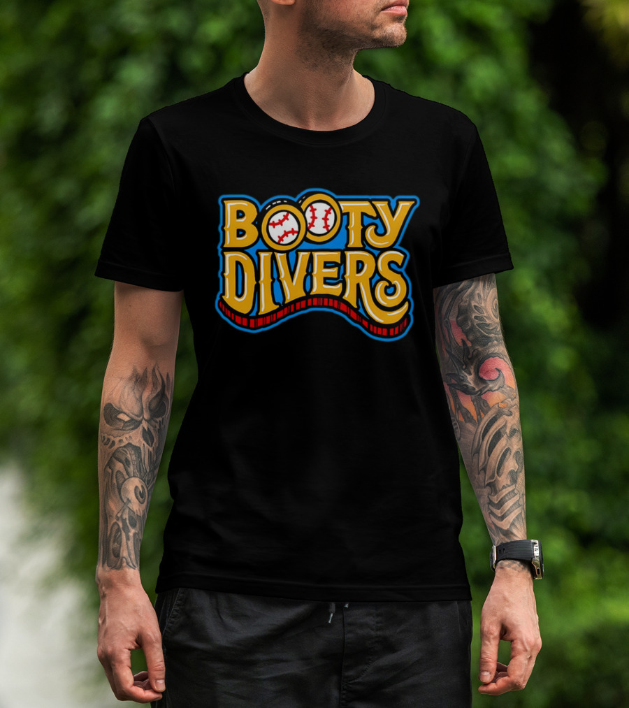 Booty Divers Baseball Theme Yellow Text With Baseballs T-Shirt