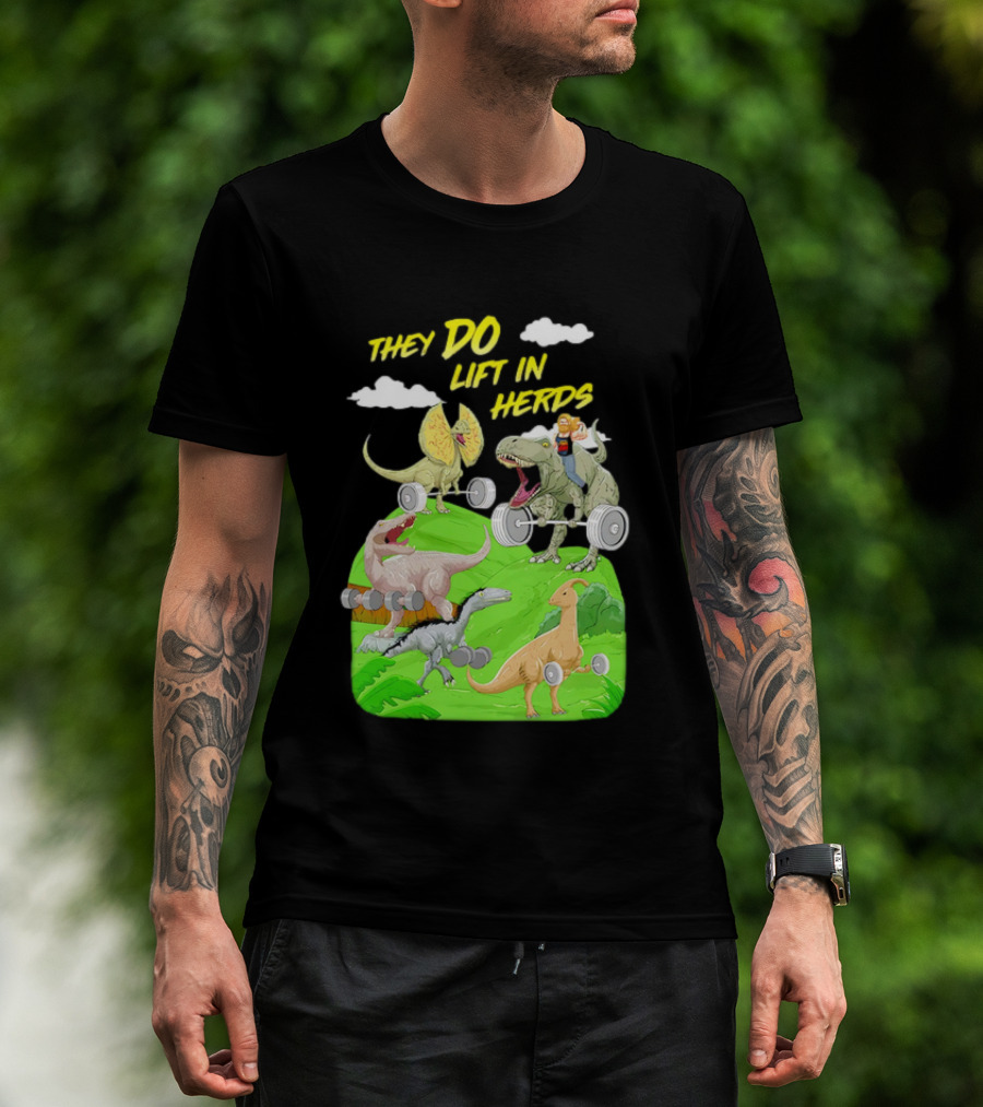 They Do Lift In Herds Dinosaur Weight Training With Barbells T-Shirt