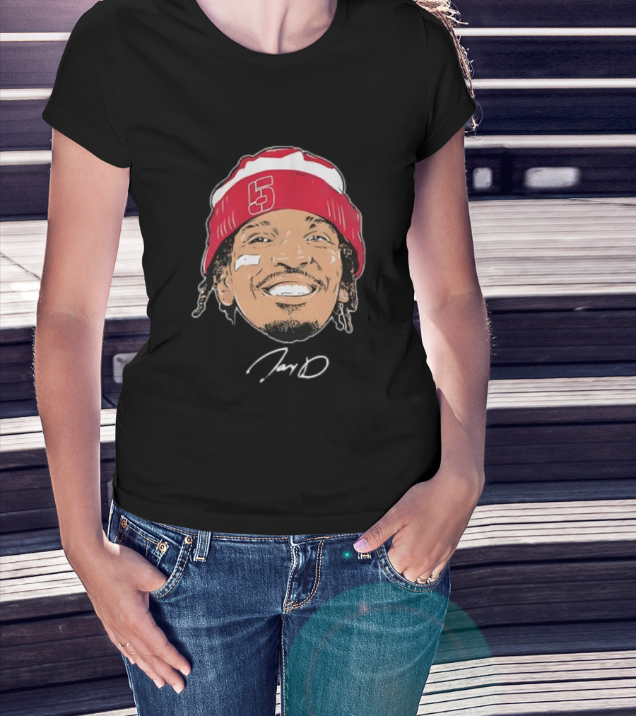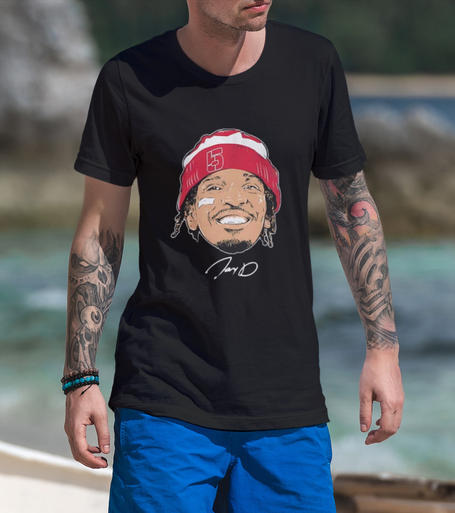 Washington Commanders Jayden Daniels Signature Face Bandage Number 5 Beanie T-Shirt