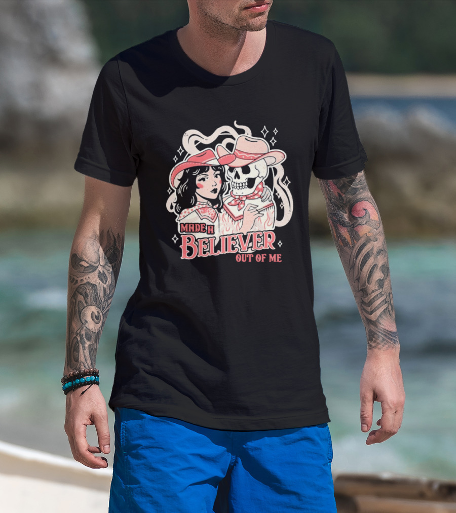 Made A Believer Out Of Me Cowgirl And Skeleton Cowboy Romance T-Shirt