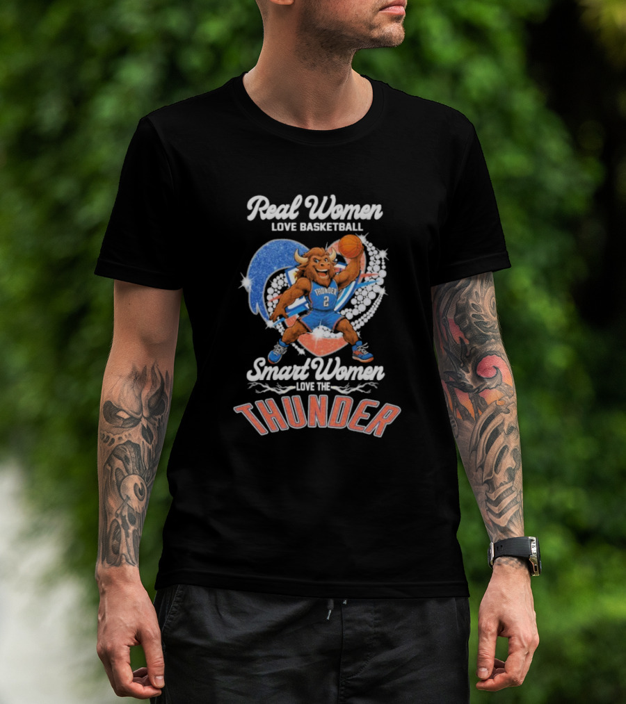 Real Women Love Basketball Smart Women Love The Thunder Basketball Mascot T-Shirt