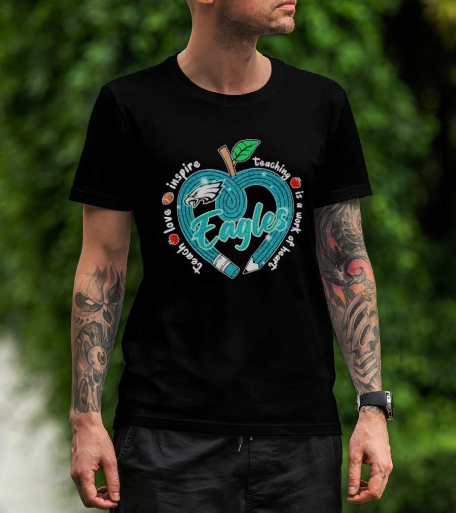 Philadelphia Eagles Teach Love Inspire Heartfelt Education Apple T-Shirt