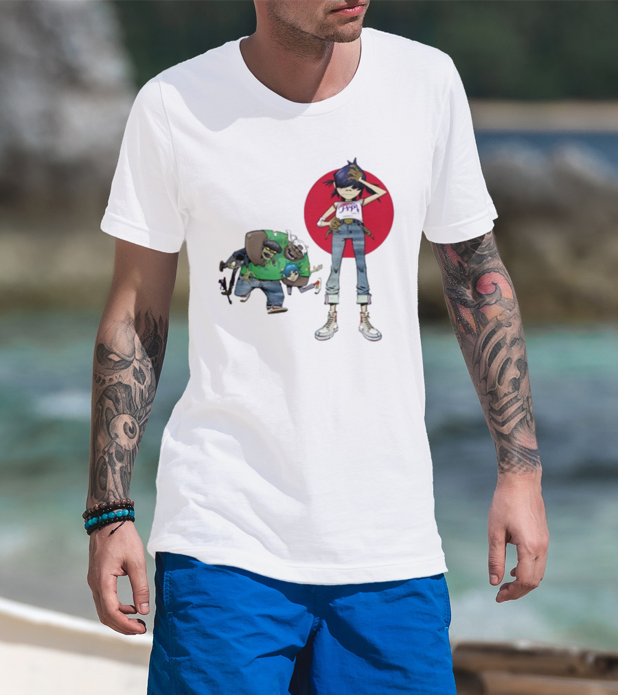 Gorillaz Invisible Sun Japanese Red Circle Band Members T-Shirt