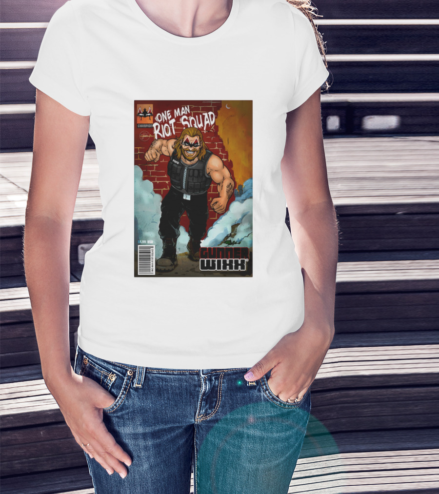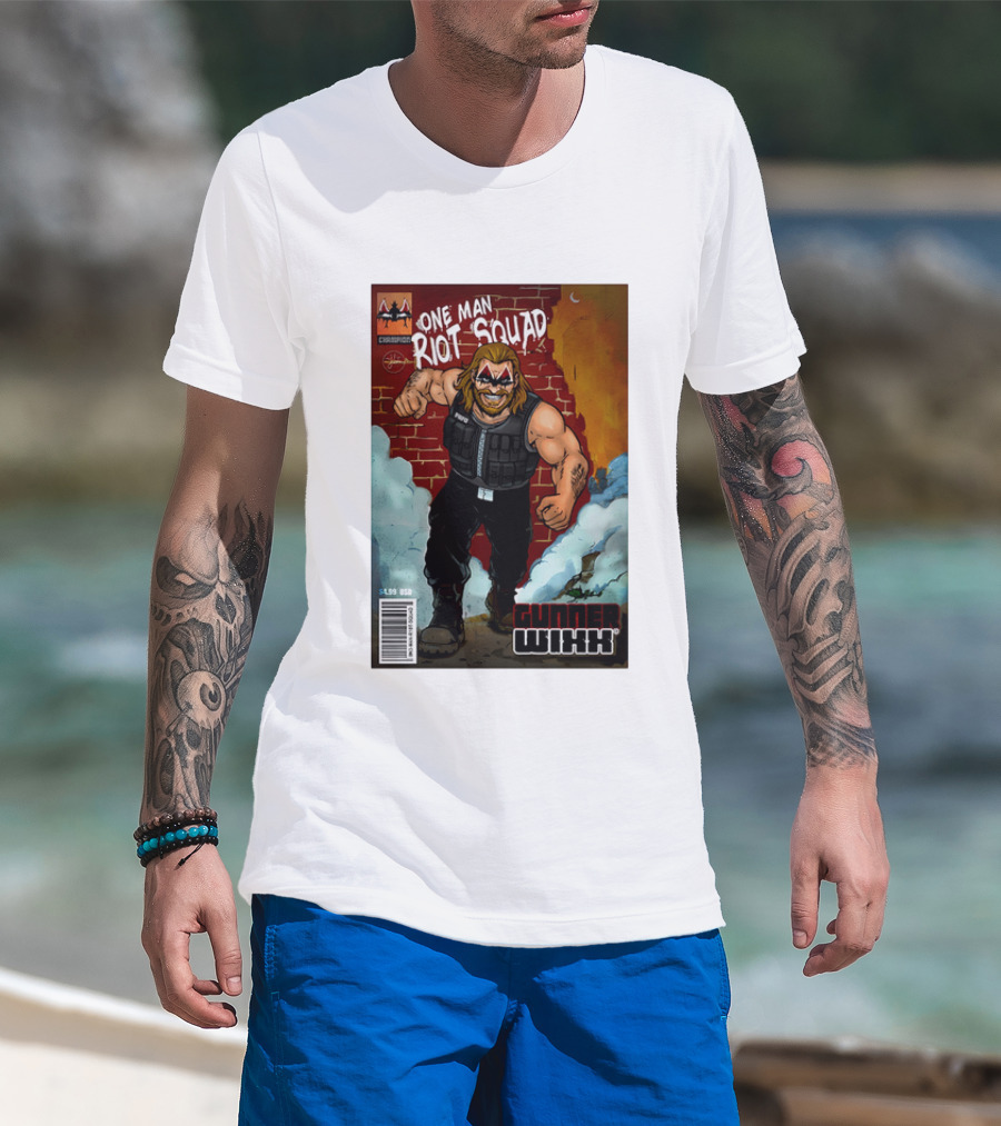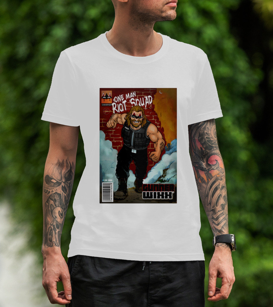 One Man Riot Squad Comic Cover Gunner Wixx Face Paint Featuring Champion Branding T-Shirt