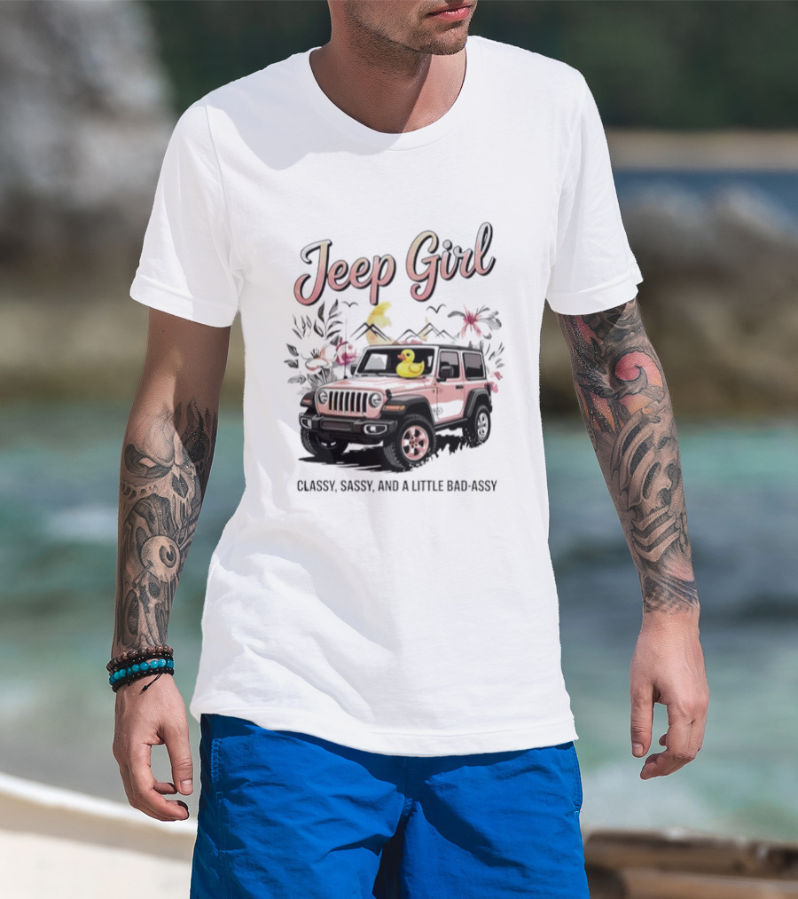 Jeep Girl Classy Sassy And Little Bad-Assy Pink Jeep Rubber Duck Floral Bunnies T-Shirt