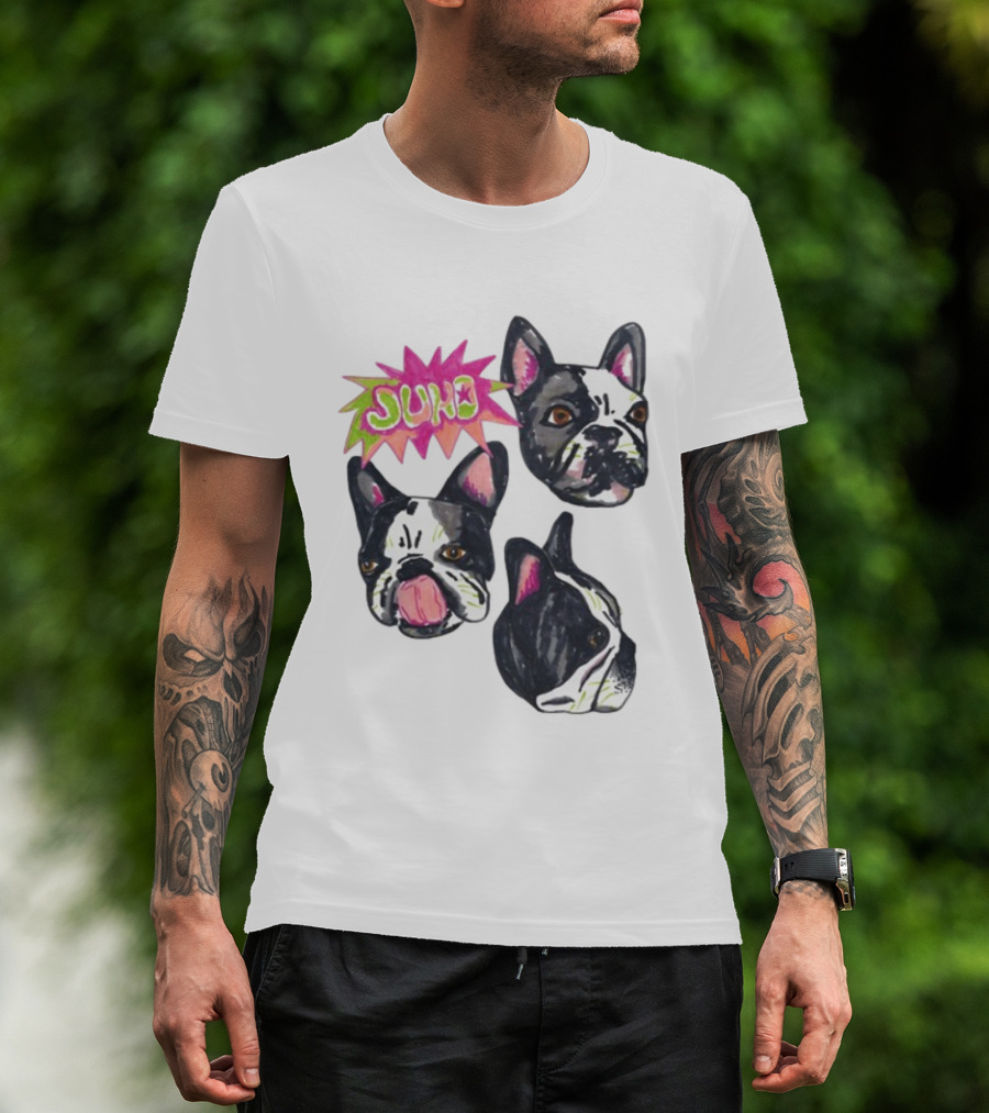 The Kel Lauren Remi Wolf Juno Dog Faces Colorful Design T-shirt is designed for everyday wear and a consistent fit. Fabric is pre-shrunk ring-spun cotton with durable stitching. See the size chart below for exact measurements.