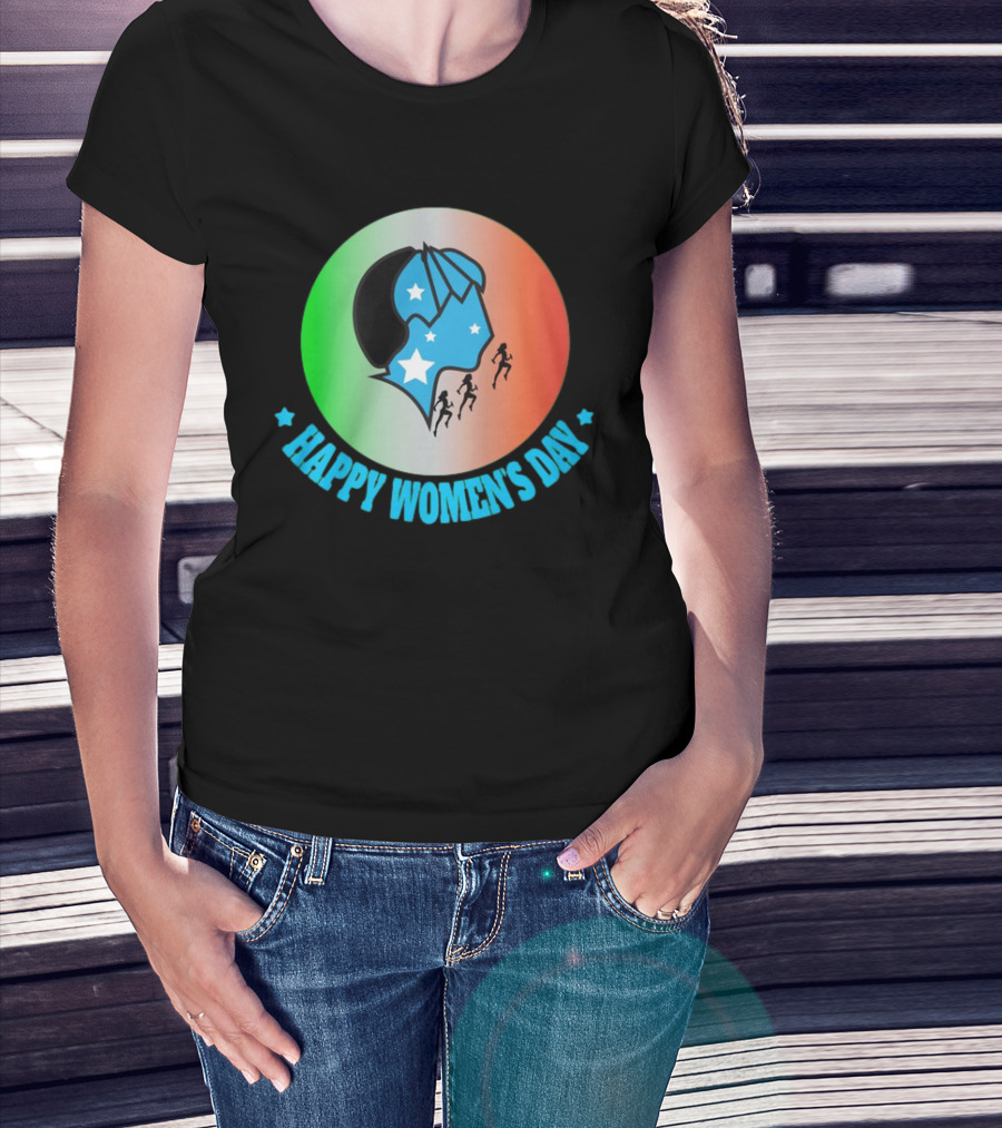 Happy Women's Day Tricolor Silhouette And Stars T-Shirt