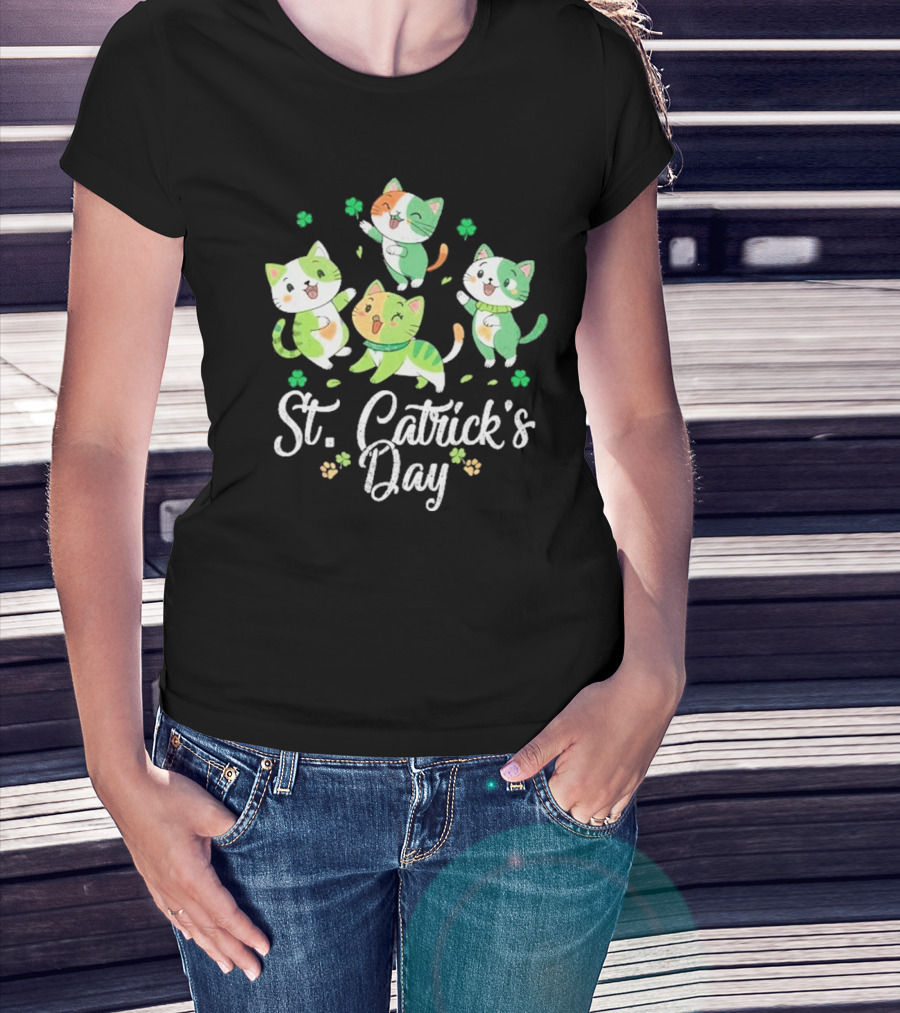 St Catricks Day Cats St Patricks Day Cat Lover St Pattys T-Shirt