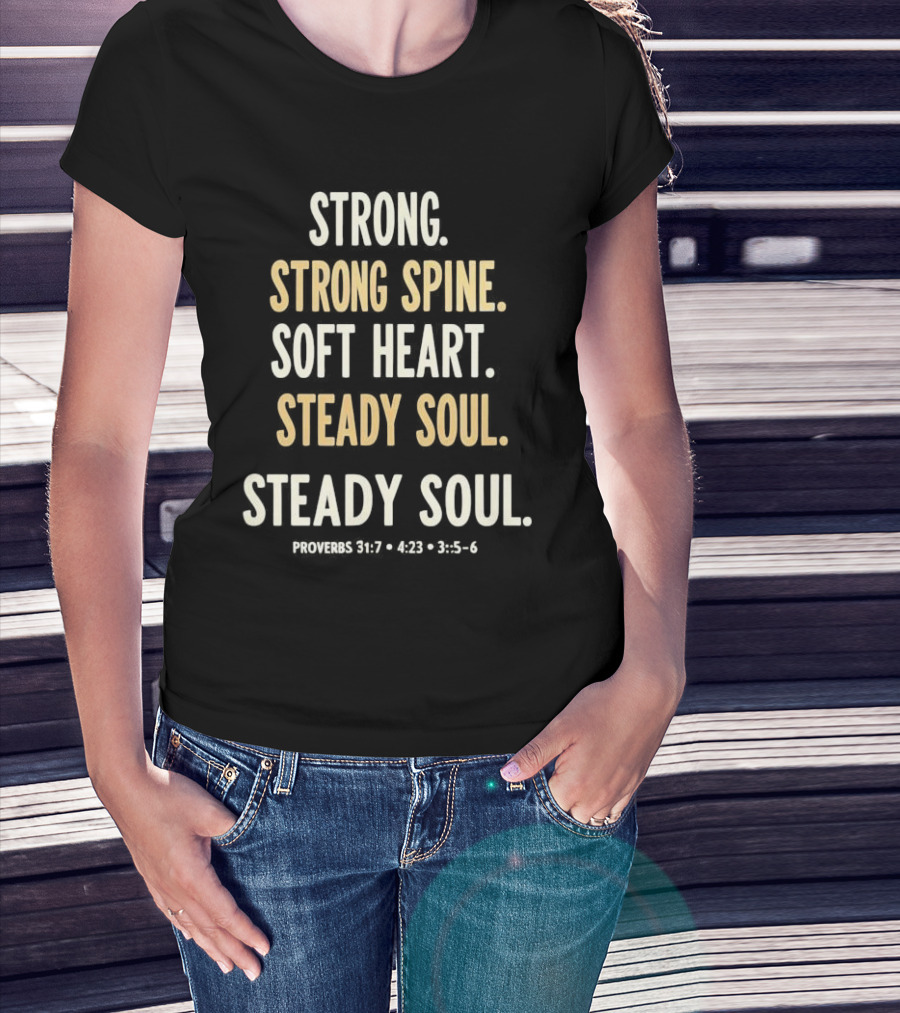 Strong Spine Soft Heart Steady Soul Proverbs 16:7 4:23 23:7 T-Shirt
