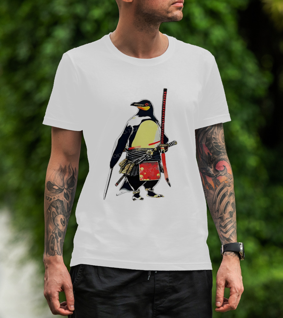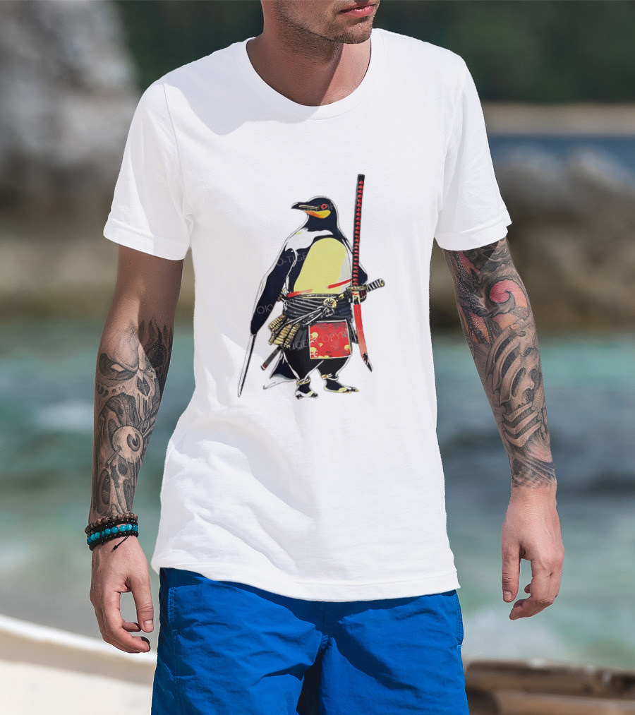 Samurai Penguin Katana Warrior With Traditional Armor T-Shirt