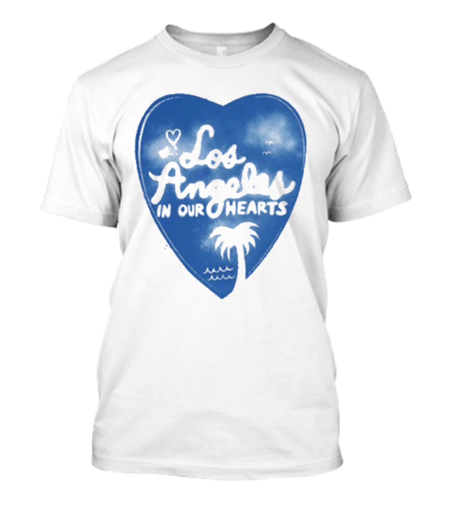 Los Angeles In Our Hearts Blue Heart With Palm Tree T-Shirt