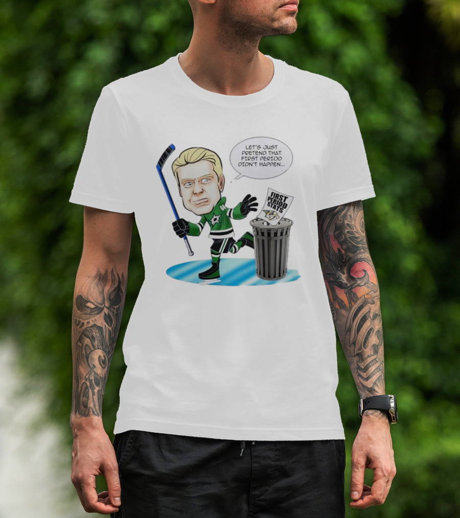 Let's Just Pretend That First Period Didn't Happen Mikael Granlund Dallas Stars Hockey Trash Can First Period Stats T-Shirt