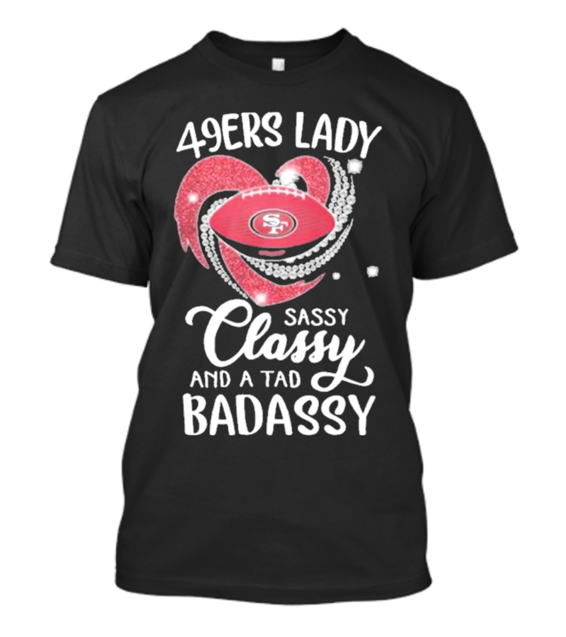 49ers Lady Sassy Classy And A Tad Badassy With Football Diamond Heart T-Shirt