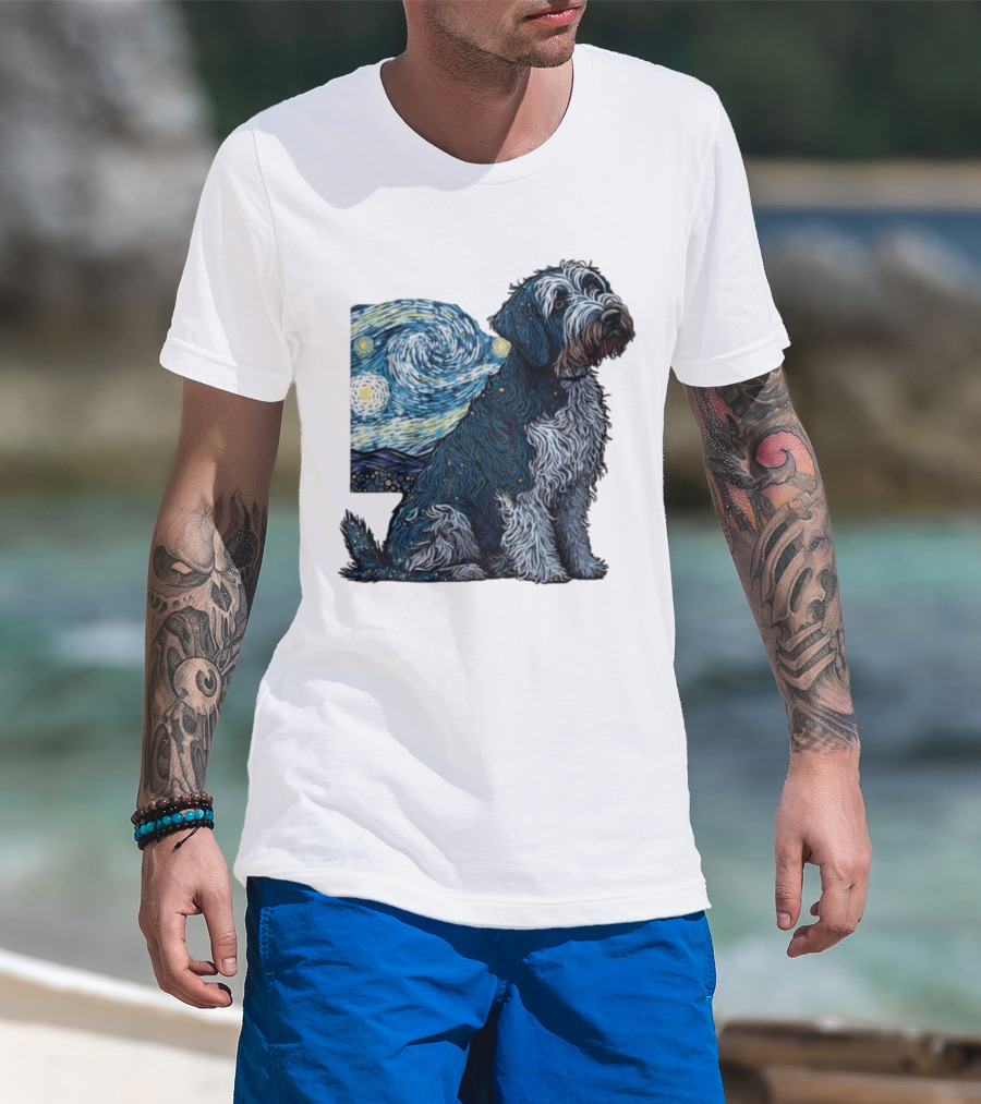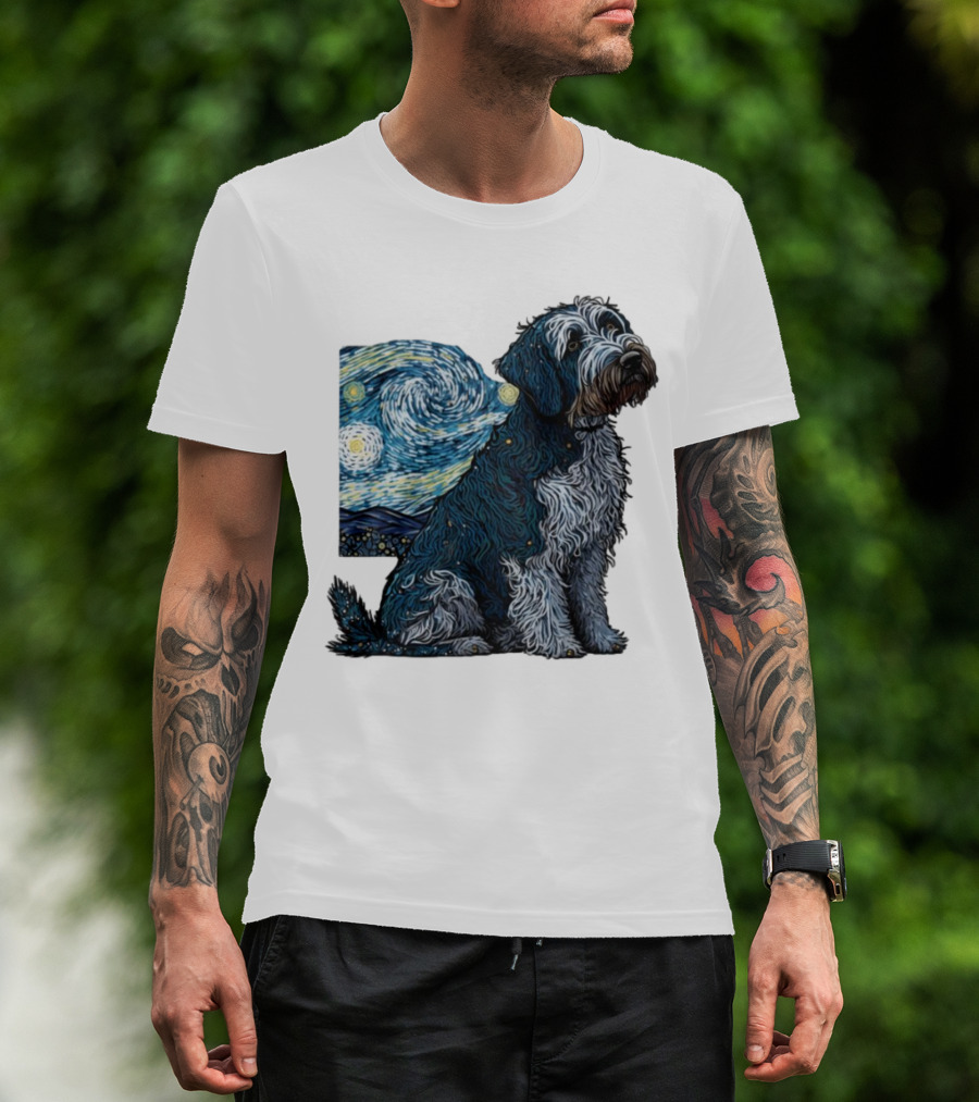 Van Gogh Starry Night Dog Painting Style T-Shirt