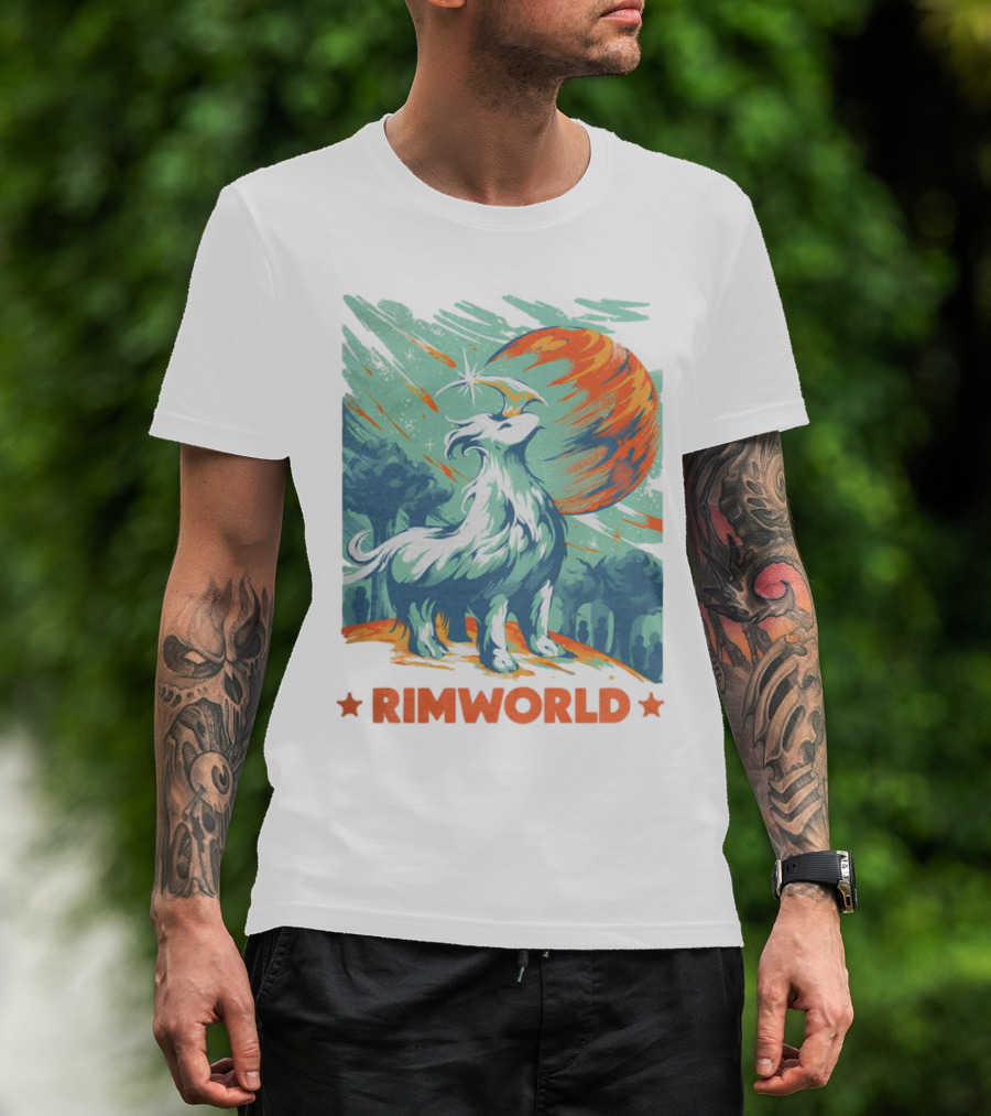 The RimWorld Wisest Creature Celestial Spirit Wolf Planetary Backdrop T-shirt is designed for everyday wear and a consistent fit. Fabric is pre-shrunk ring-spun cotton with durable stitching. See the size chart below for exact measurements.