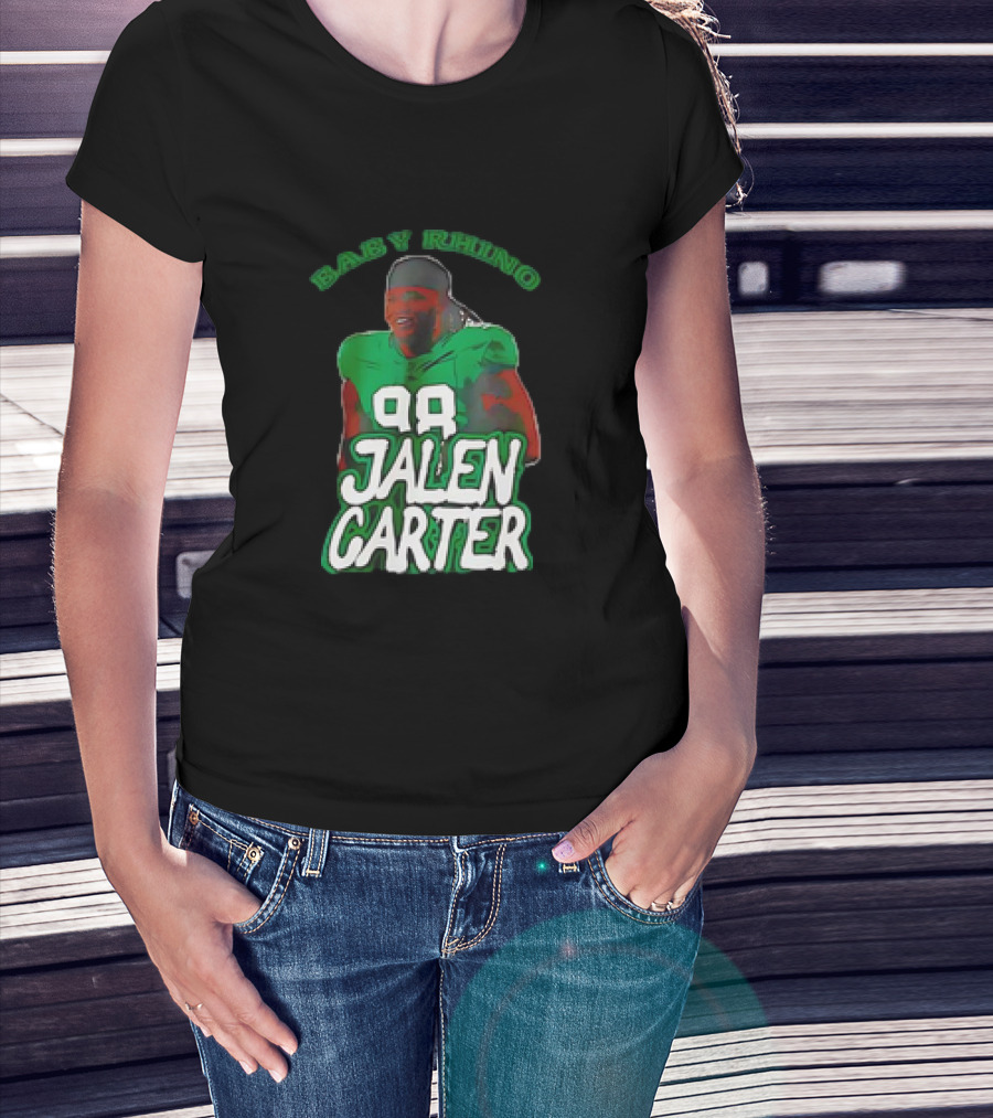 The Jalen Carter 99 Baby Rhino T-shirt is designed for everyday wear and a consistent fit. Fabric is pre-shrunk ring-spun cotton with durable stitching. See the size chart below for exact measurements.