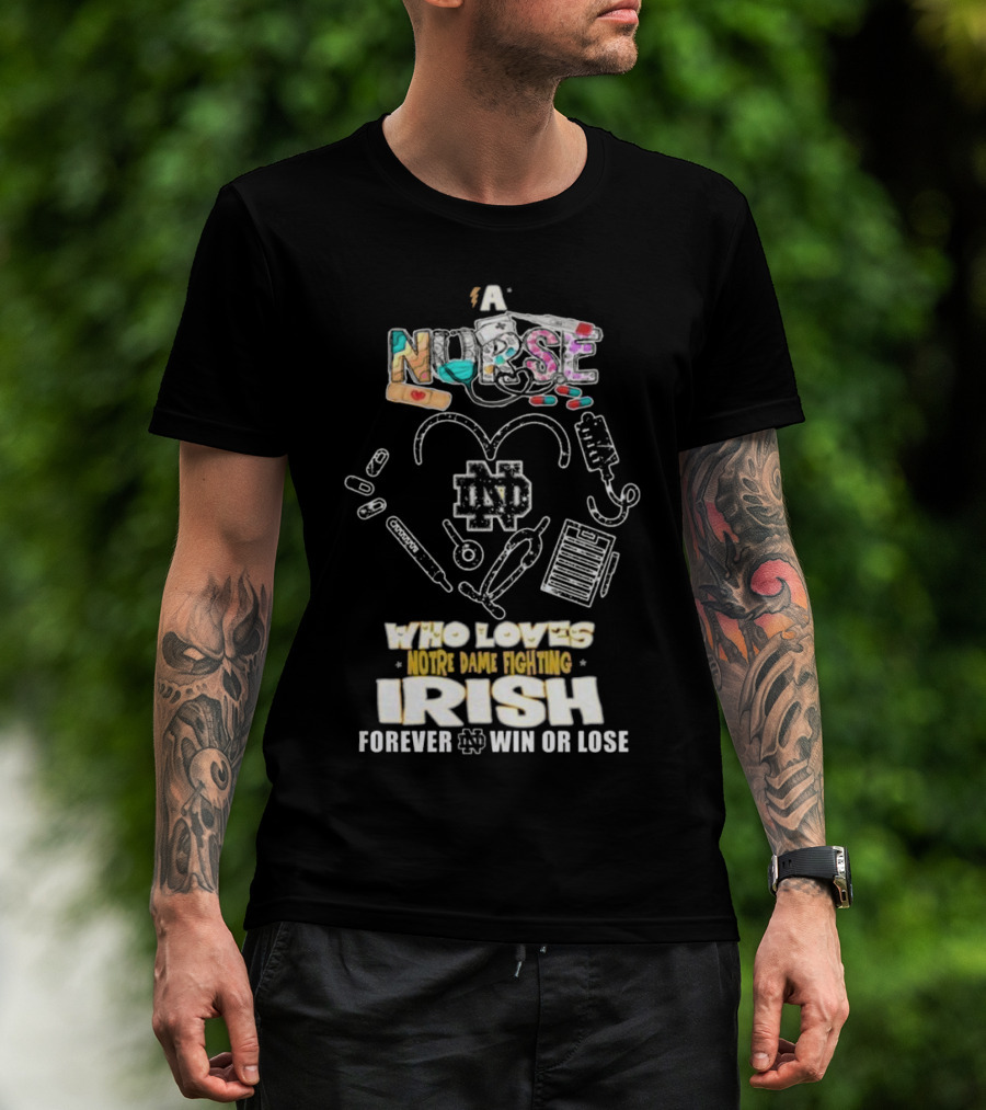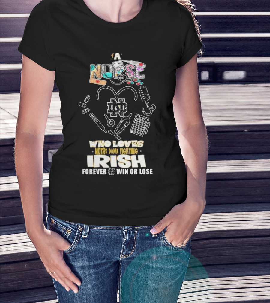 A Nurse Who Loves Notre Dame Fighting Irish Forever Win Or Lose ND T-Shirt